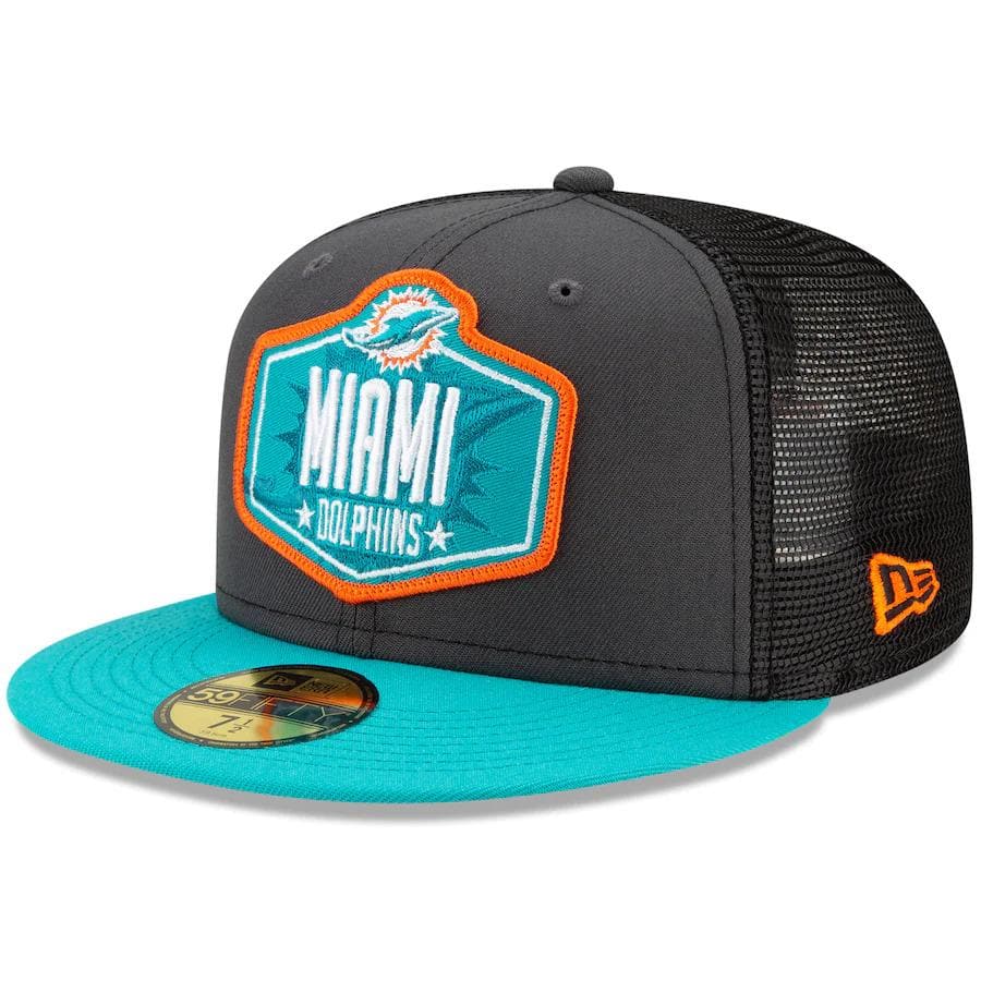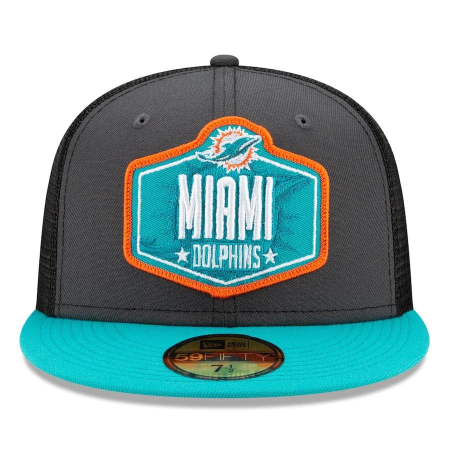 You're the biggest Miami Dolphins fan around and you're always ready for draft day. Show off your excitement with this sweet 2021 NFL Draft On-Stage 59FIFTY Fitted Hat from New Era. It's decked out in exclusive Miami Dolphins graphics that will help you proudly display your unmatched loyalty all season long.