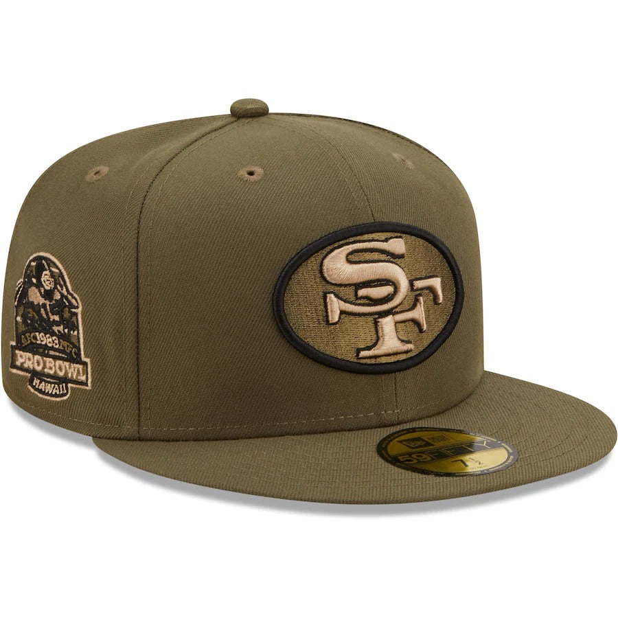 Celebrate San Francisco 49ers history with this 1983 Pro Bowl 59FIFTY fitted hat from New Era. It features striking embroidered team graphics with a matching historic side patch and a contrast camo undervisor. Add a timeless finish to any outfit with this eye-catching San Francisco 49ers hat.