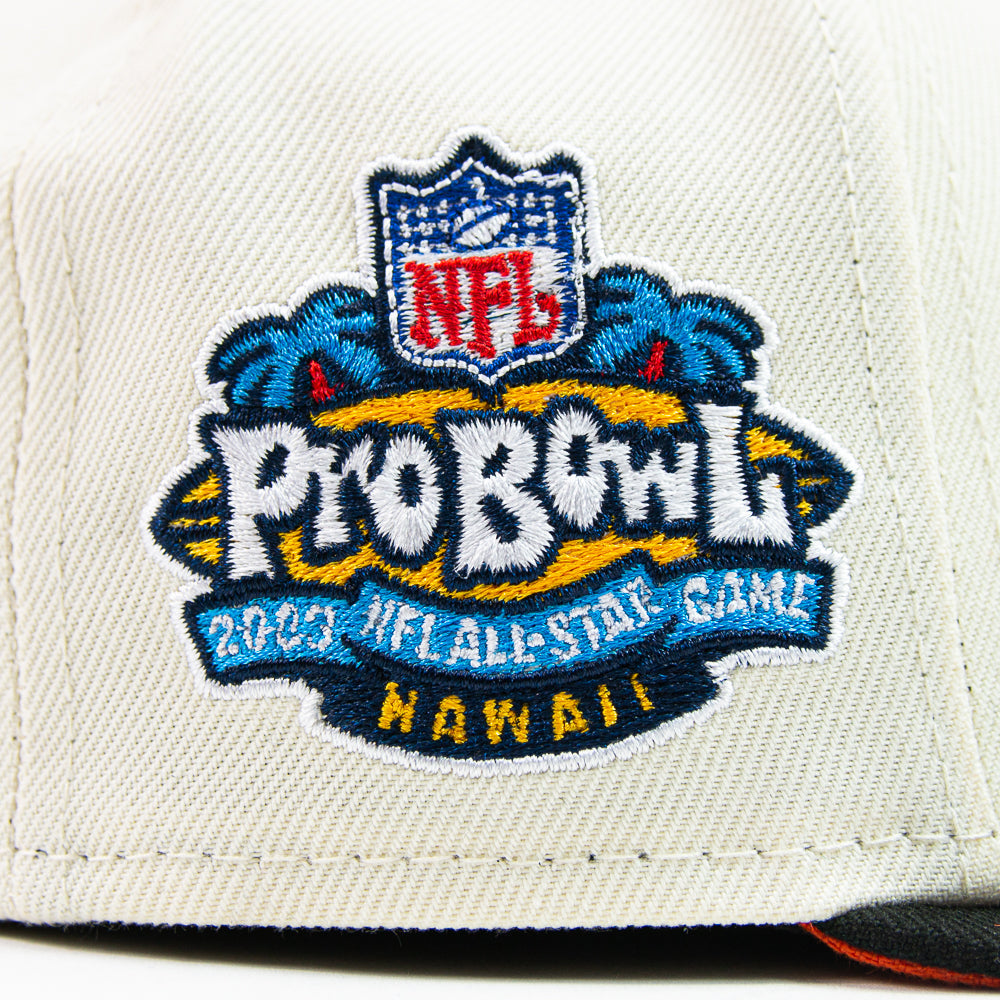 The NFL Pro Bowl fitted hat collection includes New Era 59FIFTY fitted hats of various colorways, themes and undervisors. All of the NFL fitted hats have a Pro Bowl side patch embroidered on the right panel.