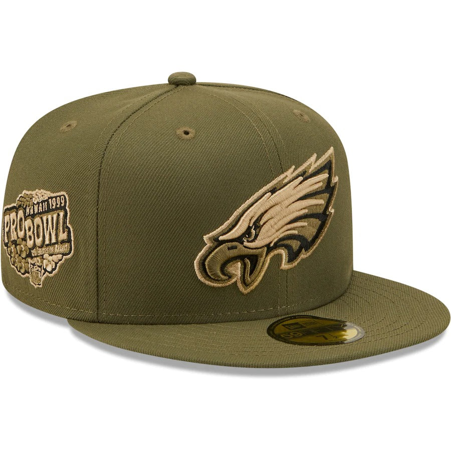 Celebrate Philadelphia Eagles history with this 1999 Pro Bowl 59FIFTY fitted hat from New Era. It features striking embroidered team graphics with a matching historic side patch and a contrast camo undervisor. Add a timeless finish to any outfit with this eye-catching Philadelphia Eagles hat.