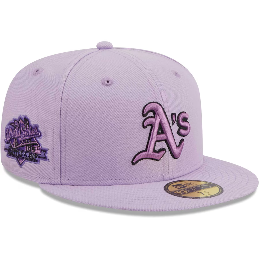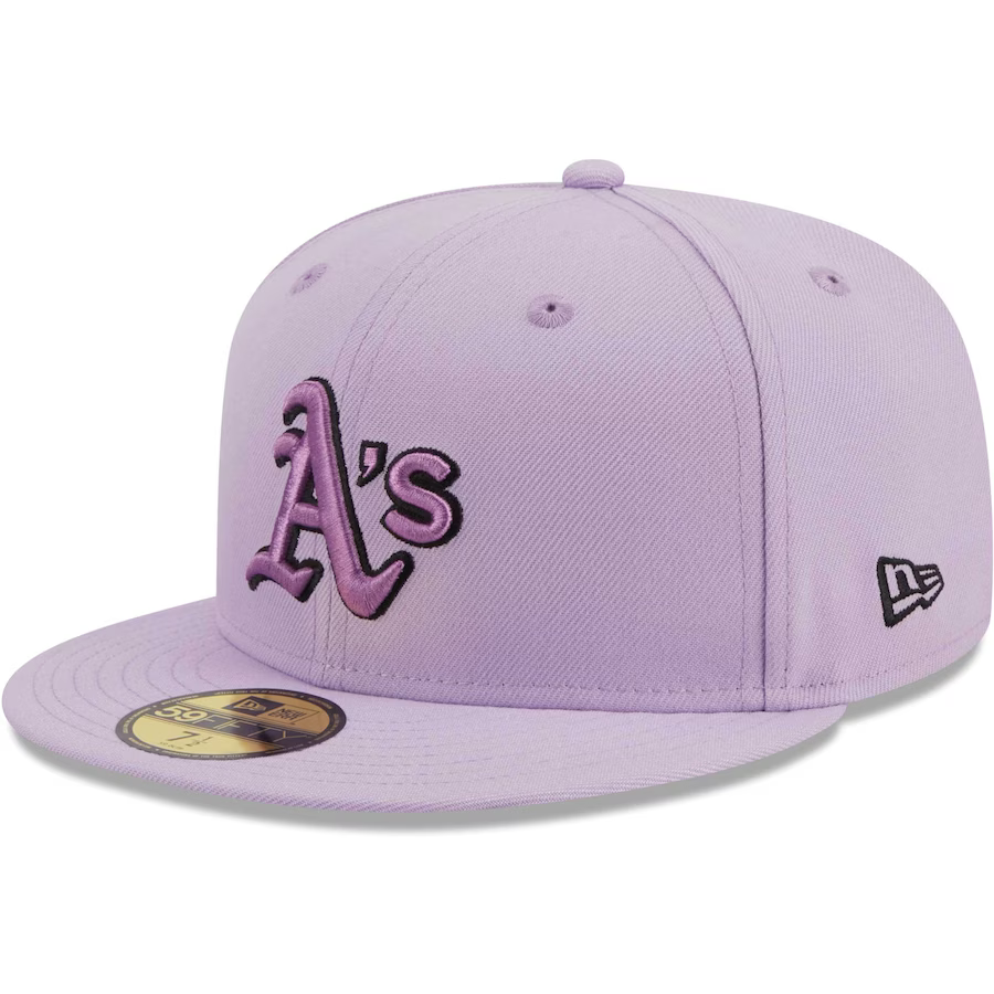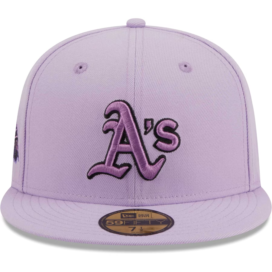 Enhance your collection of Oakland Athletics headwear with a stunning upgrade courtesy of the Lavender 2023 59FIFTY hat by New Era. This hat boasts an eye-catching design, showcasing the embroidered Oakland Athletics logo on the front panels, along with a unique patch on the side. With its fitted construction, you can count on this cap to provide a perfect fit.