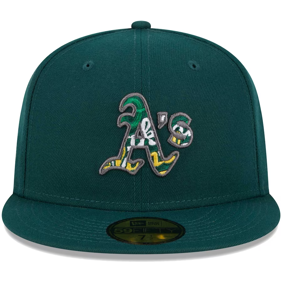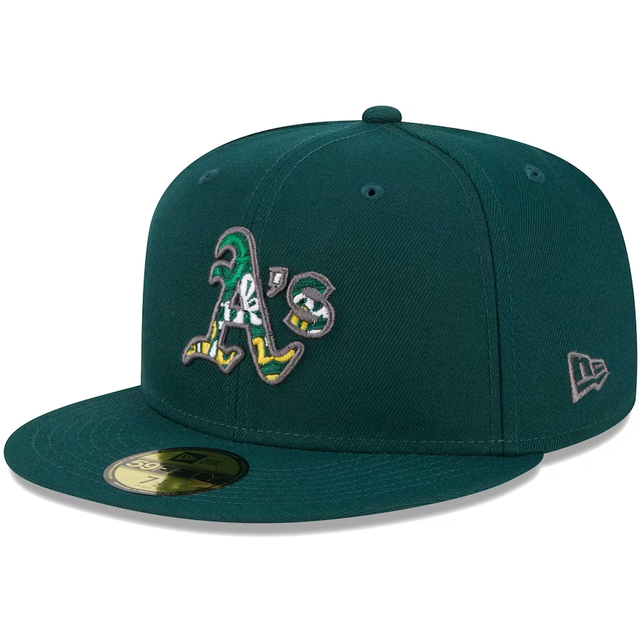 Elevate your ballpark style with the Oakland Athletics Script Fill 59FIFTY cap from New Era. This cap boasts the Oakland Athletics logo, creatively integrated with the team's wordmark for a unique and eye-catching look. With its fitted design, this cap ensures a comfortable fit that will keep you at ease during the entire game. Step up your game-day attire with this incredible cap.