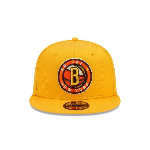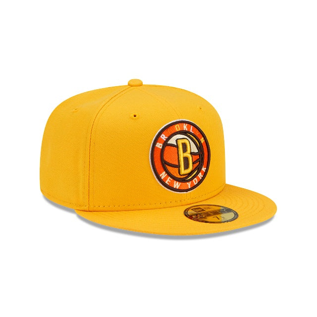 Enter at your own risk with the Brooklyn Nets Spooky Treat 59FIFTY Fitted Cap featuring bright yellows and oranges with an embroidered Nets logo at the front panels and a matching NBA logo at the rear. Additional details include an orange undervisor.
