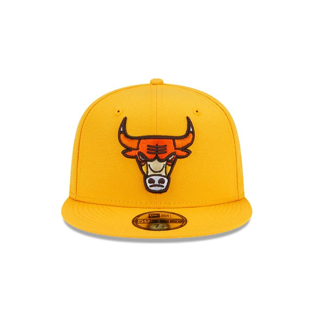 Enter at your own risk with the Chicago Bulls Spooky Treat 59FIFTY Fitted Cap featuring bright yellows and oranges with an embroidered Bulls logo at the front panels and a matching NBA logo at the rear. Additional details include an orange undervisor.