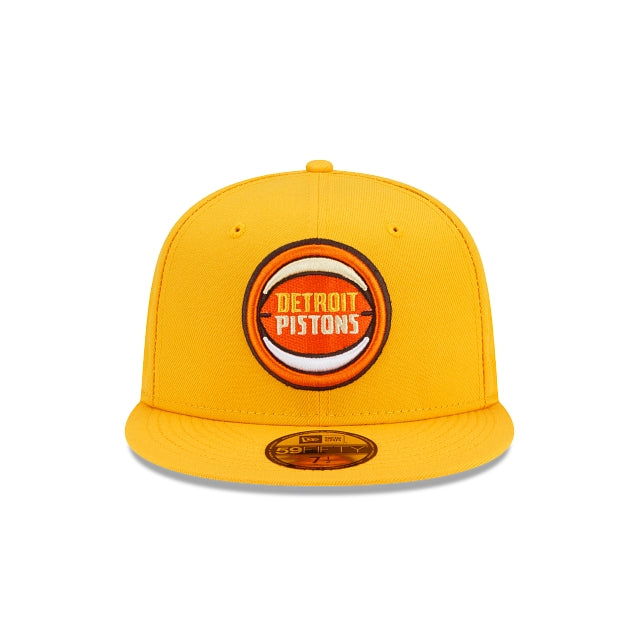 Enter at your own risk with the Detroit Pistons Spooky Treat 59FIFTY Fitted Cap featuring bright yellows and oranges with an embroidered Pistons logo at the front panels and a matching NBA logo at the rear. Additional details include an orange undervisor.