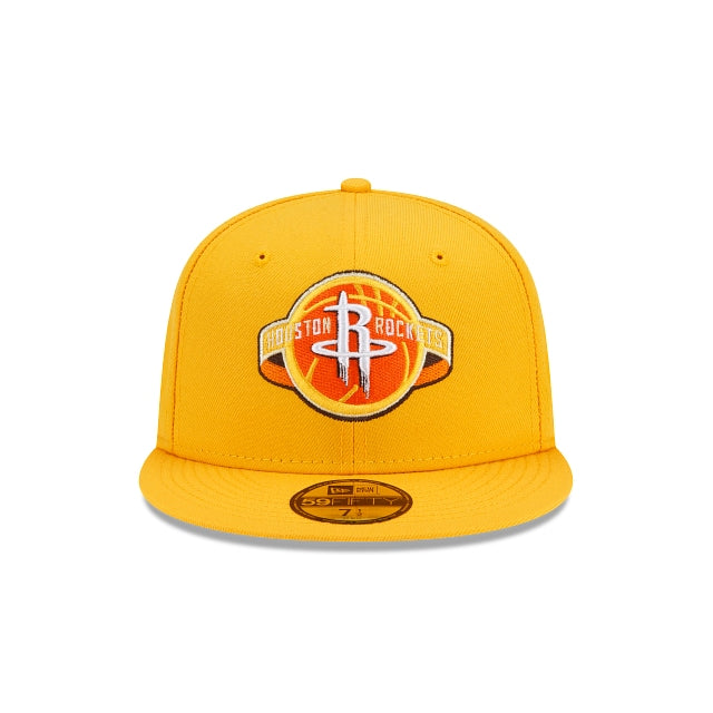 Enter at your own risk with the Houston Rockets Spooky Treat 59FIFTY Fitted Cap featuring bright yellows and oranges with an embroidered Rockets logo at the front panels and a matching NBA logo at the rear. Additional details include an orange undervisor.