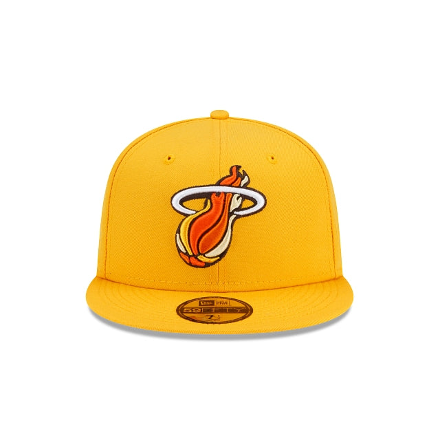 Enter at your own risk with the Miami Heat Spooky Treat 59FIFTY Fitted Cap featuring bright yellows and oranges with an embroidered Heat logo at the front panels and a matching NBA logo at the rear. Additional details include an orange undervisor.