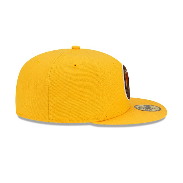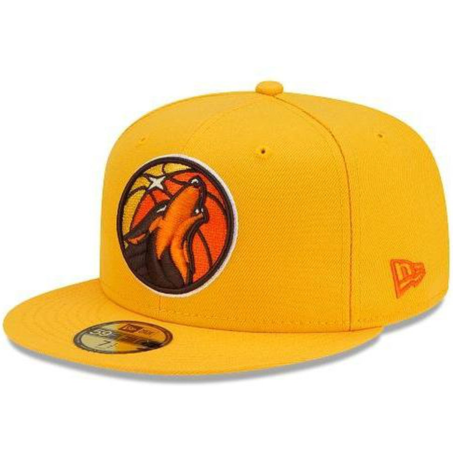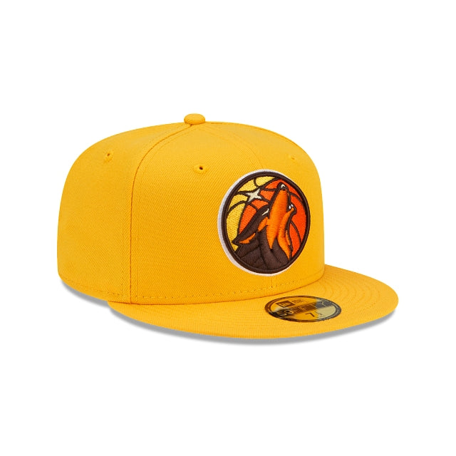 Enter at your own risk with the Minnesota Timberwolves Spooky Treat 59FIFTY Fitted Cap featuring bright yellows and oranges with an embroidered Timberwolves logo at the front panels and a matching NBA logo at the rear. Additional details include an orange undervisor.