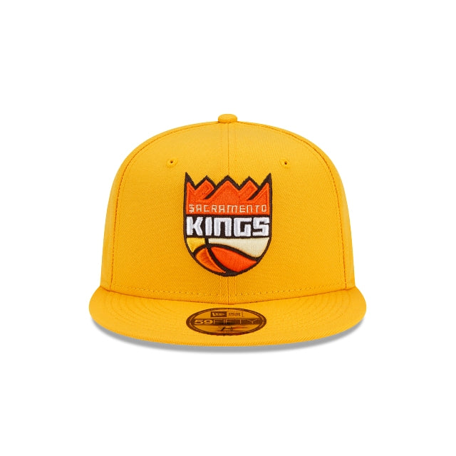 Enter at your own risk with the Sacramento Kings Spooky Treat 59FIFTY Fitted Cap featuring bright yellows and oranges with an embroidered Kings logo at the front panels and a matching NBA logo at the rear. Additional details include an orange undervisor.