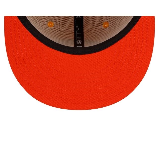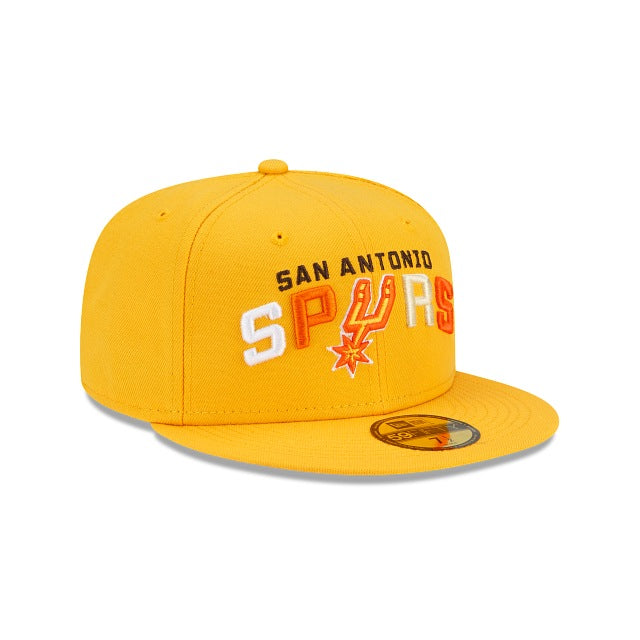Enter at your own risk with the San Antonio Spurs Spooky Treat 59FIFTY Fitted Cap featuring bright yellows and oranges with an embroidered Spurs logo at the front panels and a matching NBA logo at the rear. Additional details include an orange undervisor.