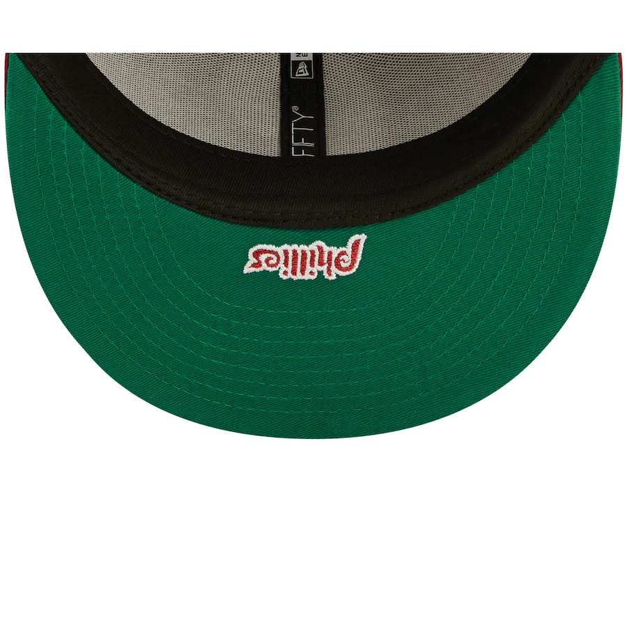 Top off your game day look with this Sidesplit 59FIFTY hat from New Era. Designed with embroidered Philadelphia Phillies graphics and a contrast-color undervisor, this fitted cap is perfect for cheering on your team with some stylish flair. The structured fit ensures a timeless finish, helping you rep the Philadelphia Phillies through the years.