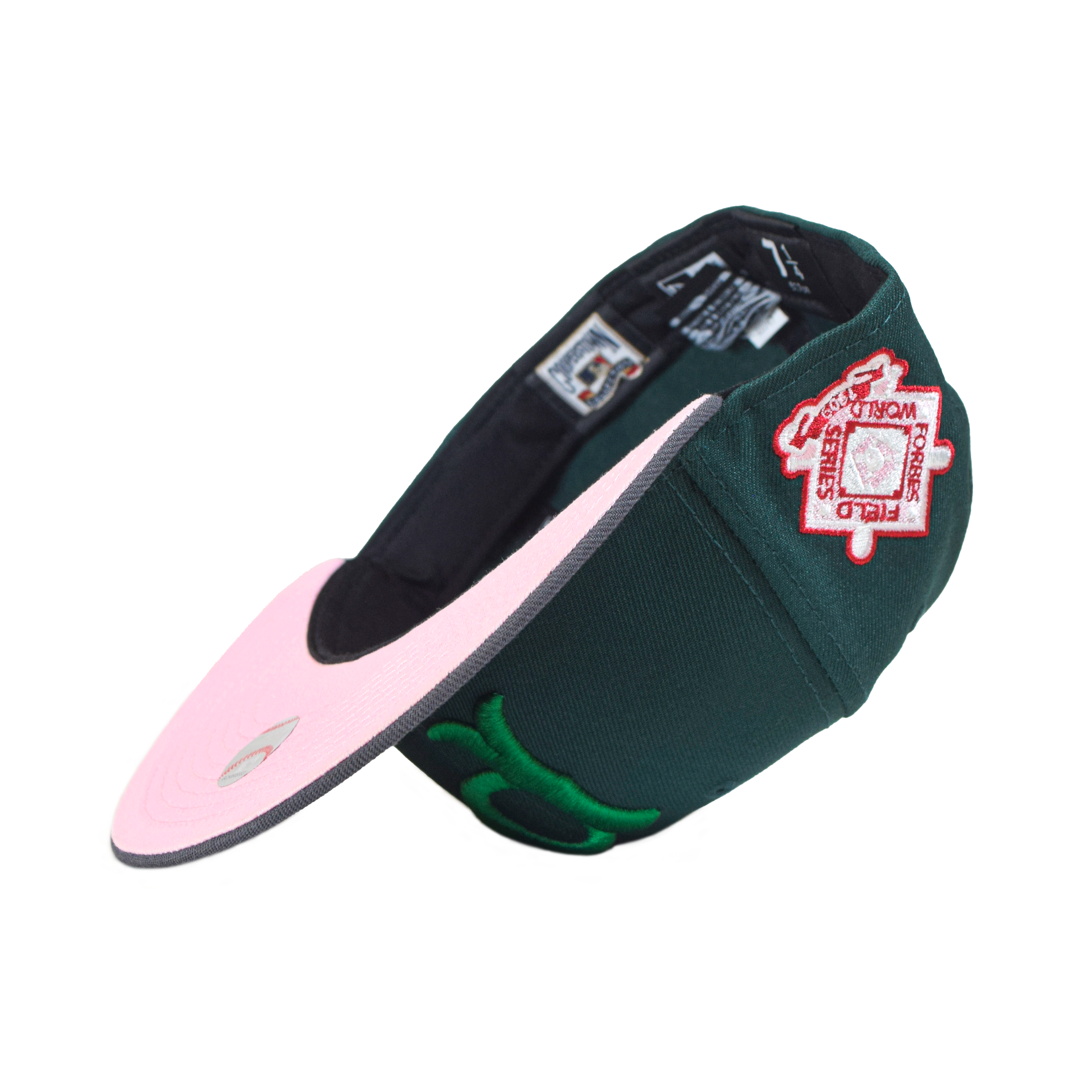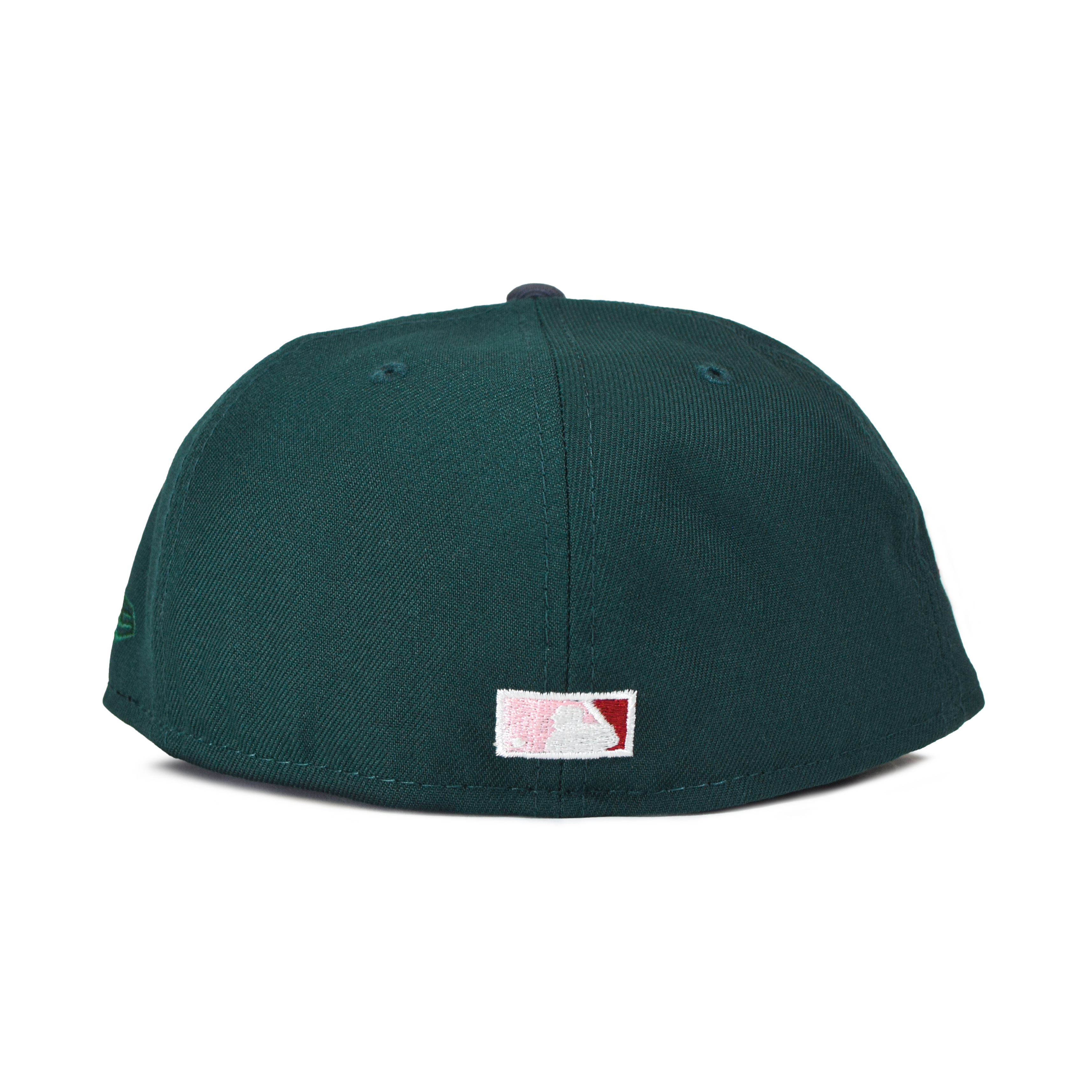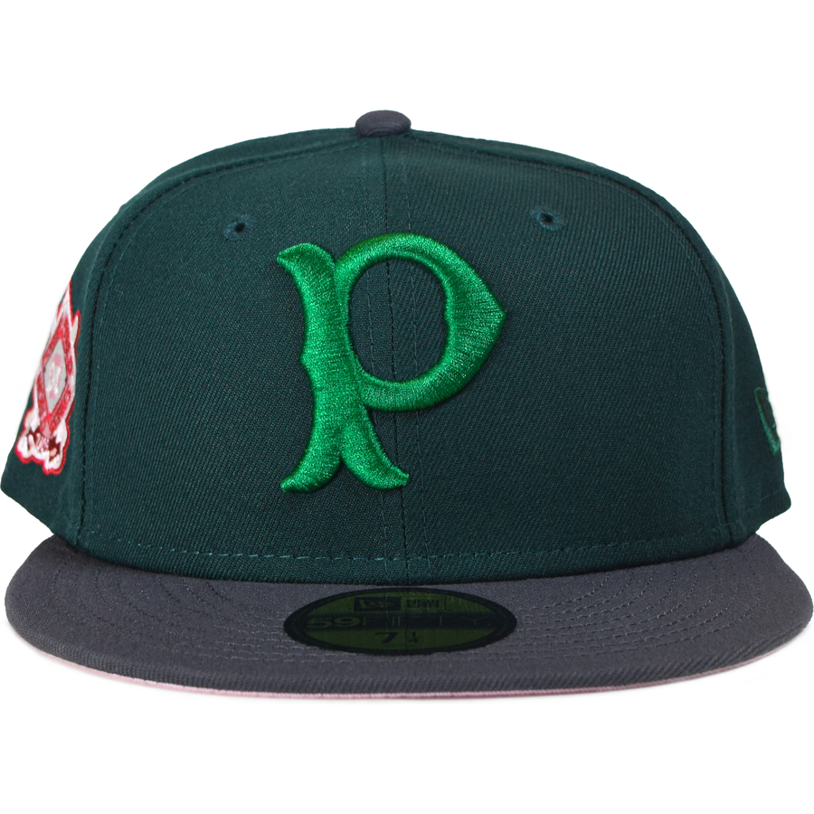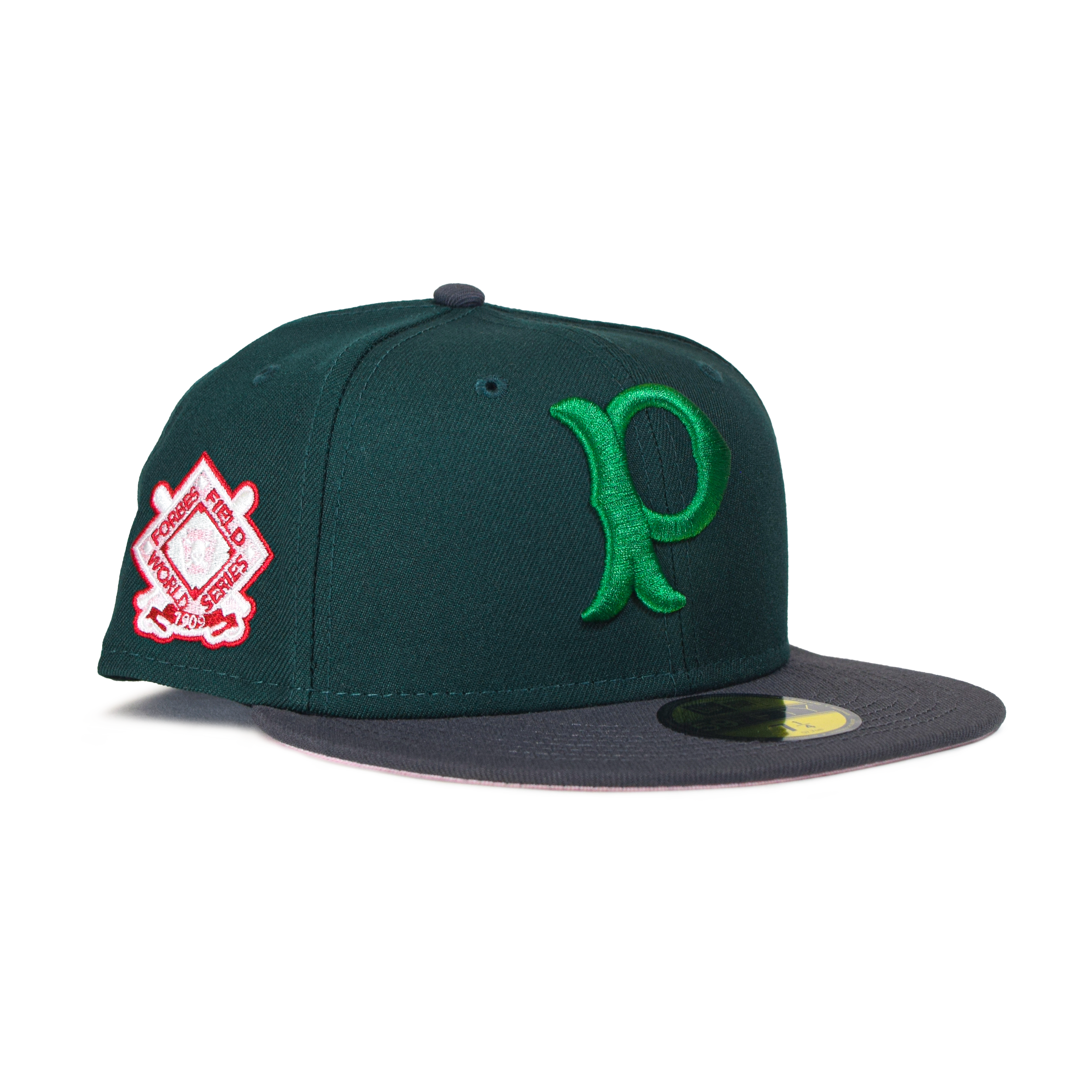 This New Era Pittsburgh Pirates "Portal Pack" Dark Green 59FIFTY Fitted Hat was released by Burdeens Chicago. The fitted cap features a six panel structured high crown, embroidered eyelets and fabric squatchee button in a dark green and graphite colorway. The front panel includes the Pittsburgh Pirates logo embroidery and the New Era logo embroidered on the left panel. The official MLB insignia is embroidered on the rear crown.