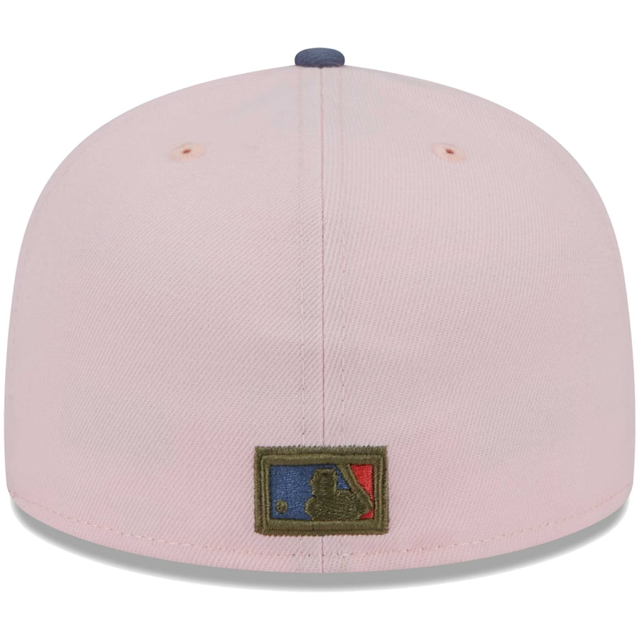 Elevate your Detroit Tigers gear with this pink and navy blue colorway New Era 59FIFTY fitted hat, adding a unique touch to your collection. With its structured construction and high crown, it offers a classic and stylish look. The hat proudly displays distinct Detroit Tigers embroidery, making it clear where your allegiance lies.