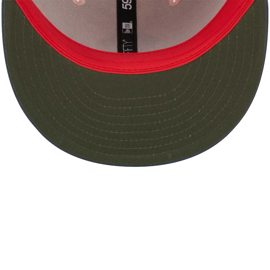 Elevate your New York Yankees gear with this pink and navy blue colorway New Era 59FIFTY fitted hat, adding a unique touch to your collection. With its structured construction and high crown, it offers a classic and stylish look. The hat proudly displays distinct New York Yankees embroidery, making it clear where your allegiance lies.