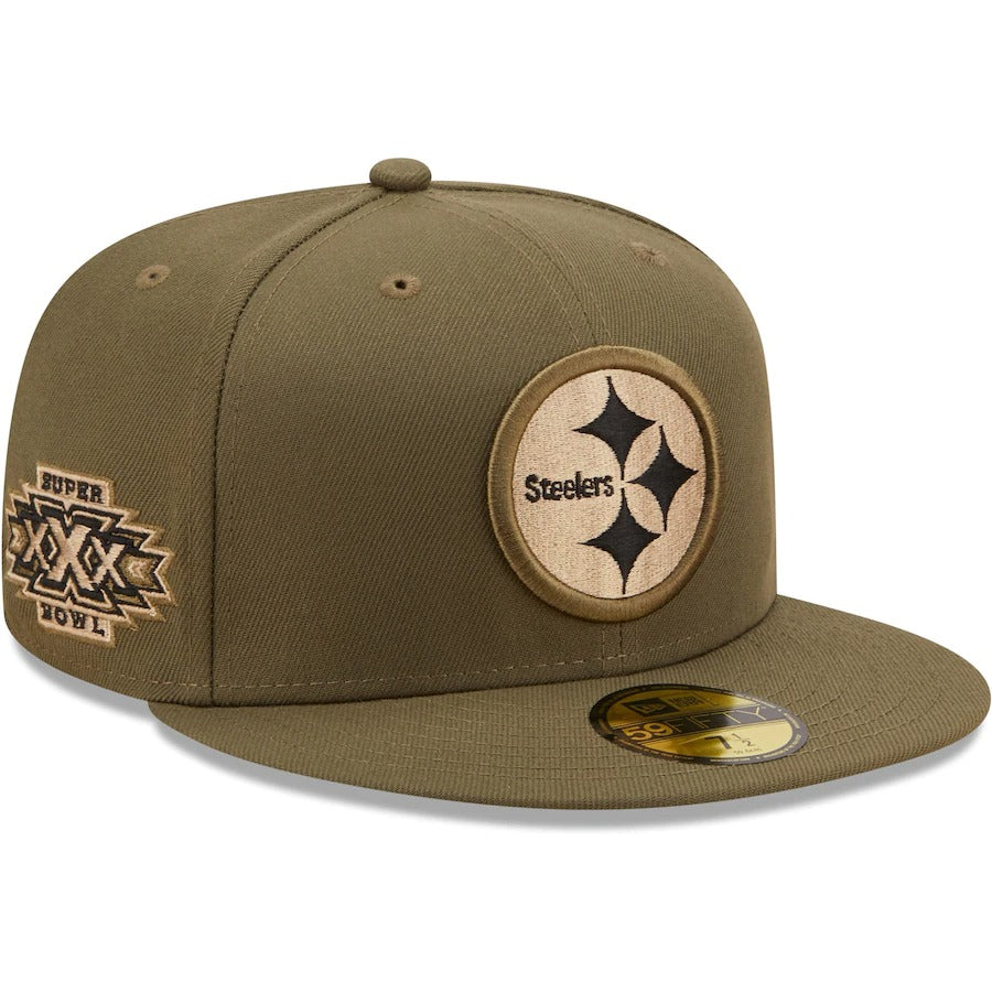 New Era Pittsburgh Steelers Olive Super Bowl XXX Camo Undervisor 59FIFTY Fitted Hat