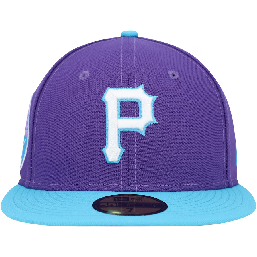 Celebrate your love for the Pittsburgh Pirates with the eye-catching New Era Vice 59FIFTY hat. Inspired by the dazzling city lights, this hat boasts a captivating purple and blue color scheme, adding a distinct touch to your favorite team's iconic aesthetic. The embroidered Pittsburgh Pirates logo on the right-side panel adds the perfect final detail to this fitted cap, making it a must-have accessory to showcase your unwavering fandom.
