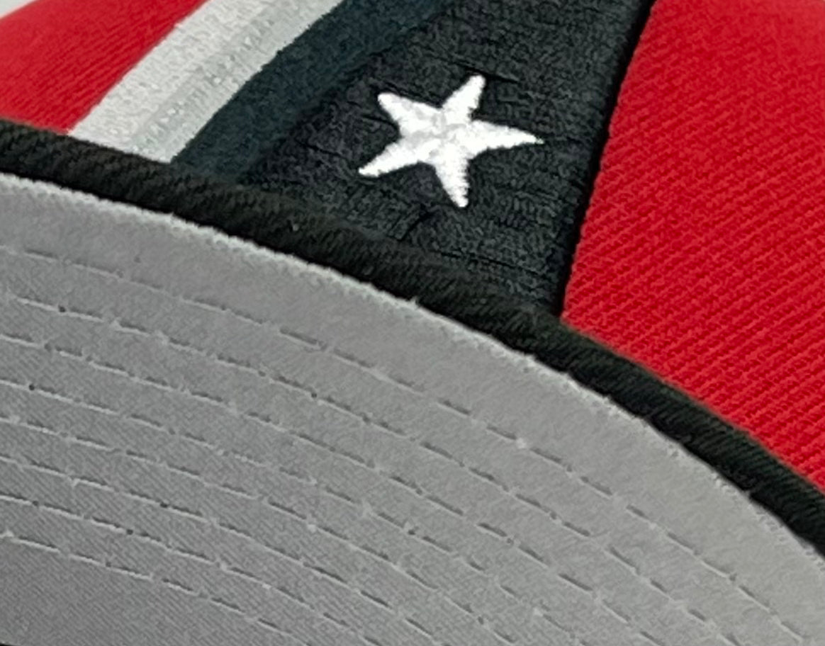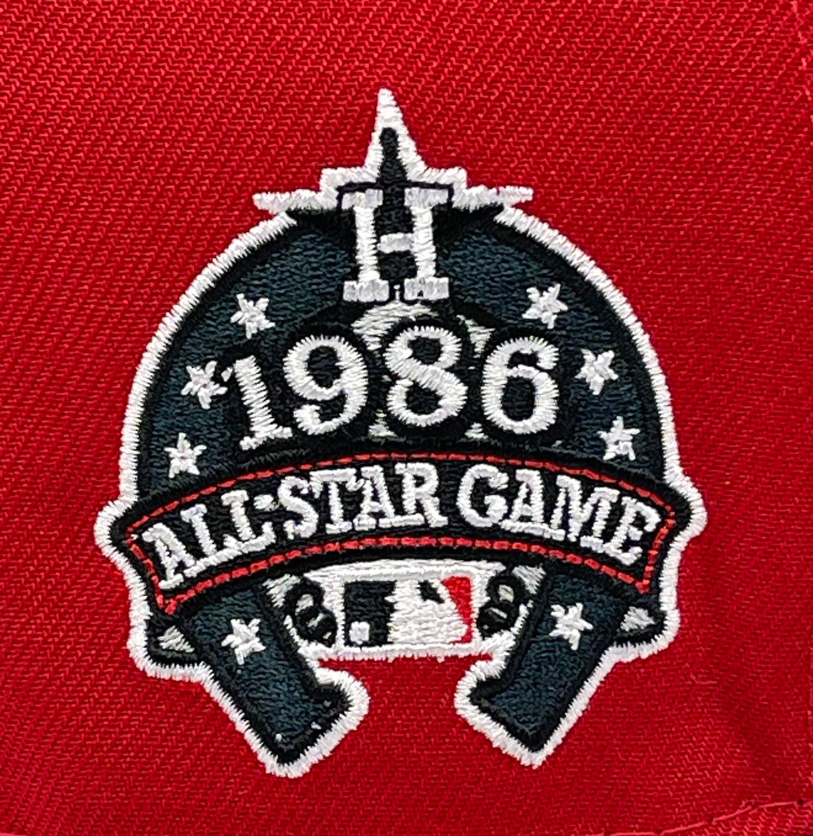 This Houston Astros 59FIFTY fitted hat was released by 4ucaps. The fitted has a red six panel structured high crown and embroidered eyelets with a black flat brim and fabric squatchee button. The fitted also has a grey bottom undervisor. The front panel features the Houston Astros Prototype logo embroidery with a 1986 ASG side patch on the right panel. The left panel of the fitted displays the New Era logo and the official MLB Batterman embroidery on the rear crown.