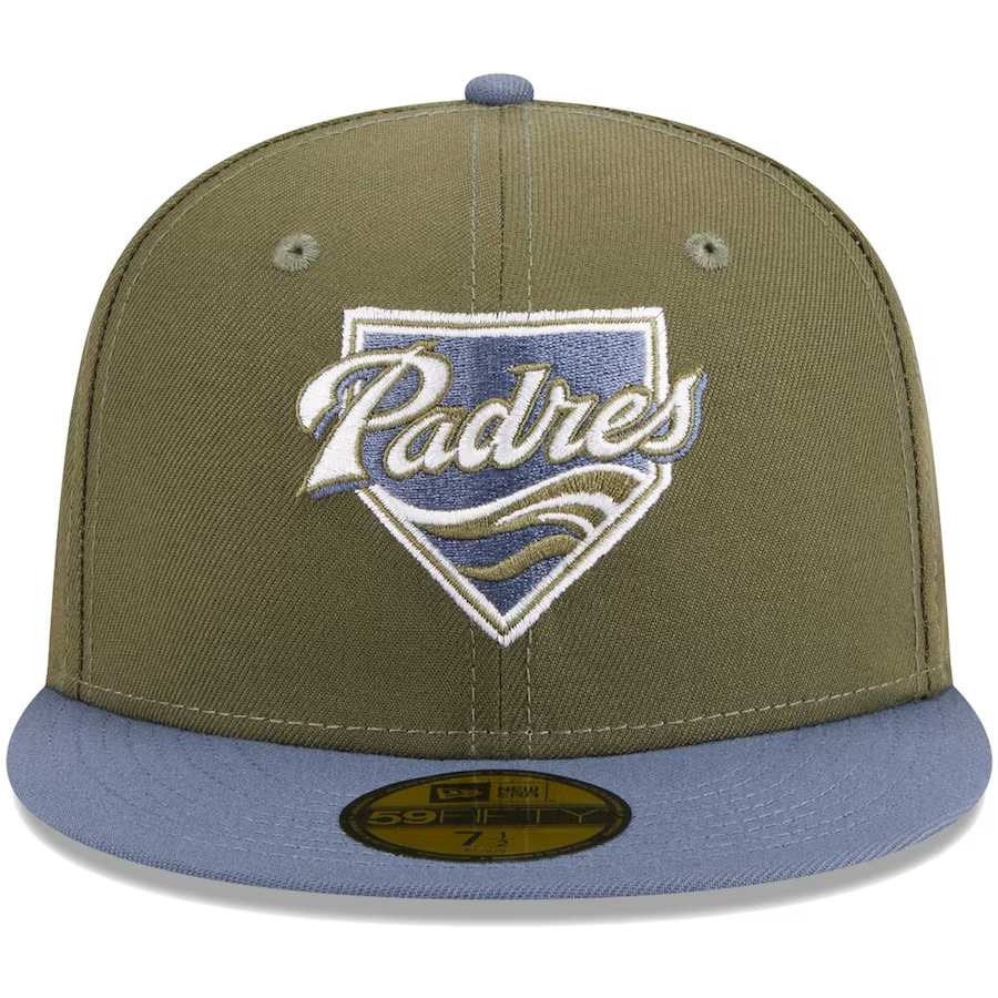 If you're a die-hard San Diego Padres fan, you can flaunt your unwavering team spirit with this New Era 59FIFTY cap. The hat boasts a distinctive color combination of olive and blue, with embroidered San Diego Padres graphics on both the crown and side. Plus, the fitted construction ensures you'll stay comfortable no matter where you go.