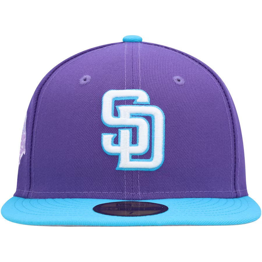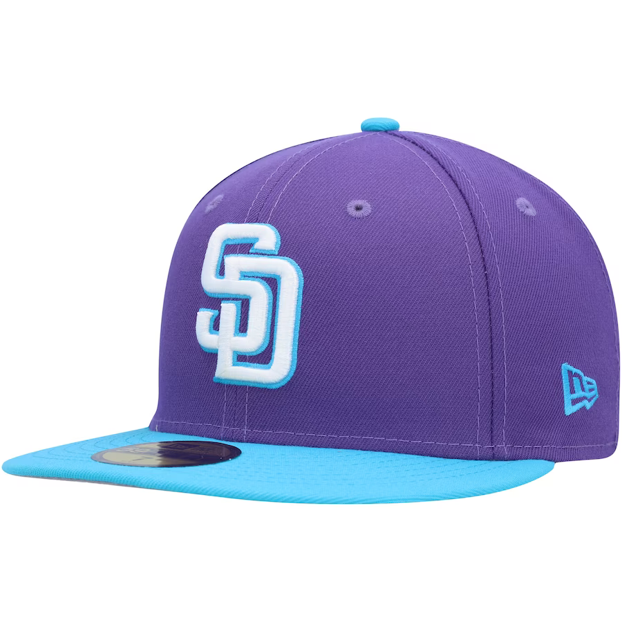Celebrate your love for the San Diego Padres with the eye-catching New Era Vice 59FIFTY hat. Inspired by the dazzling city lights, this hat boasts a captivating purple and blue color scheme, adding a distinct touch to your favorite team's iconic aesthetic. The embroidered San Diego Padres logo on the right-side panel adds the perfect final detail to this fitted cap, making it a must-have accessory to showcase your unwavering fandom.