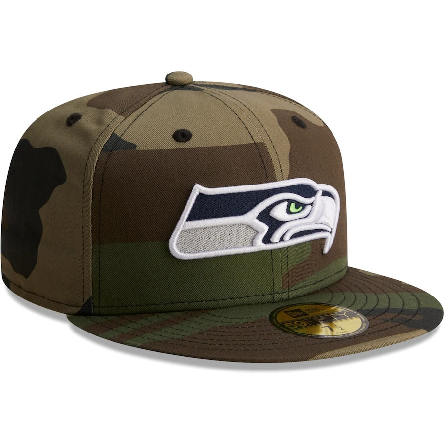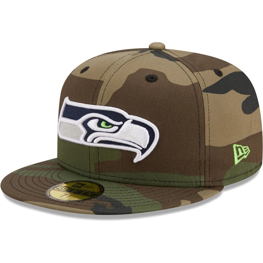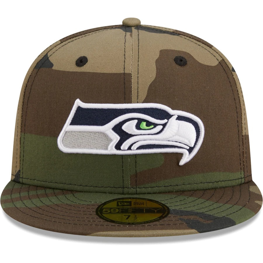 Stay shaded in bold Seattle Seahawks style with this Woodland 59FIFTY hat. This New Era headwear features an embroidered logo over a striking camo pattern. With a contrast undervisor for an extra dash of team color, this fitted cap is a must-have for any Seattle Seahawks game day attire.