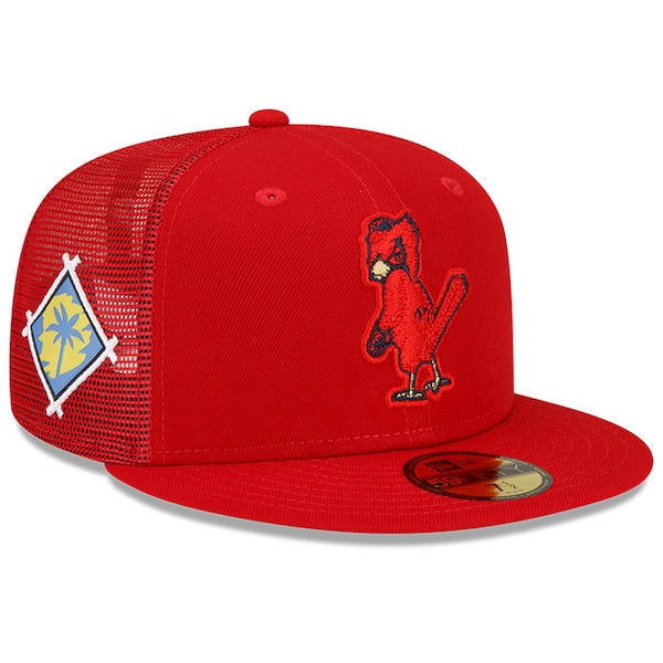 Get ready to start the MLB 2022 regular season in true St. Louis Cardinals style with this Spring Training 59FIFTY fitted hat from New Era. Along with a high crown and structured fit for a street-ready look, the mesh back allows for more breathability. Best of all, the spirited St. Louis Cardinals embroidery on the front and the bold applique on the side further show off your excitement for the upcoming season.