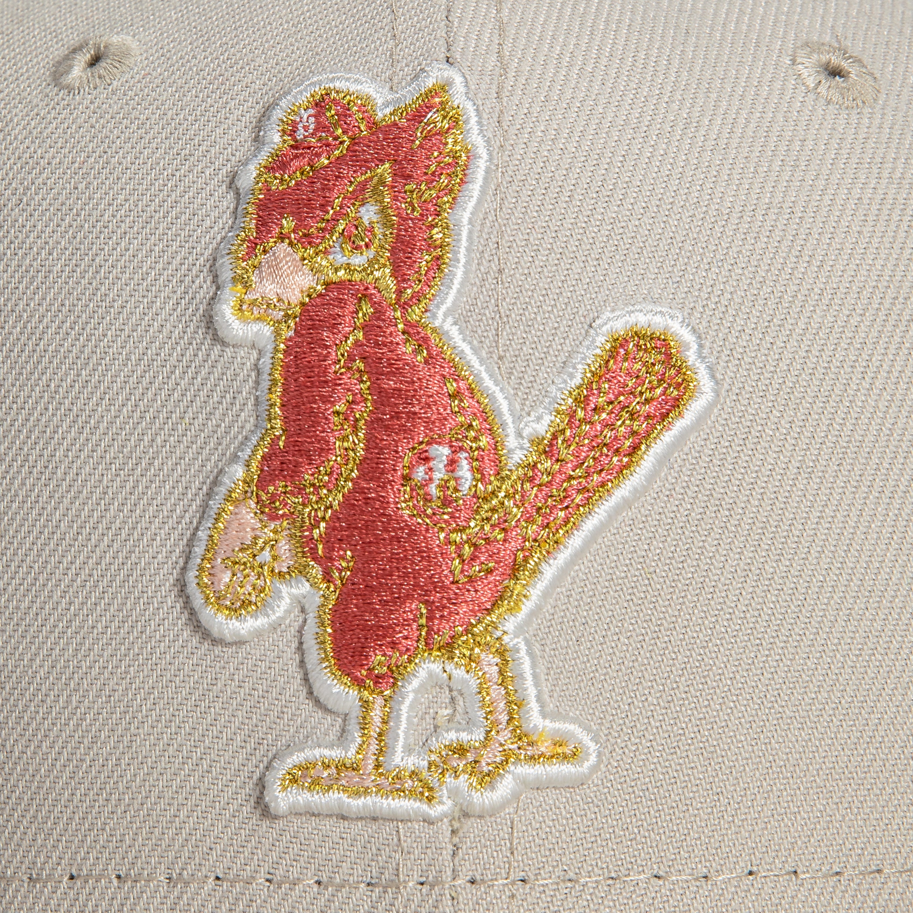 This New Era Rose Gold St Louis Cardinals 1957 All-Star Game 59FIFTY Fitted Hat were originally released by Hat Club. The fitteds have a red rose, stone and apricot colorway with a six panel structured high crown embroidered eyelets and a fabric squatchee button. The fitted cap also has a flat bill with a color undervisor. The front panel features the St. Louis Cardinals logo embroidery and a side patch embroidery on the right panel. These Rose Gold fitteds were released in 2022.