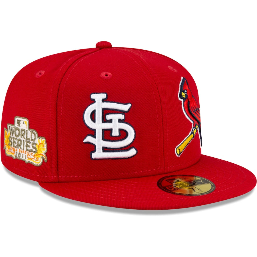 Show off St. Louis Cardinals history from all sides with this Patch Pride 59FIFTY hat by New Era. Its eye-catching design features St. Louis Cardinals graphics through the years on every panel. The flat bill also keeps you shaded, while the fitted construction provides a perfect fit.