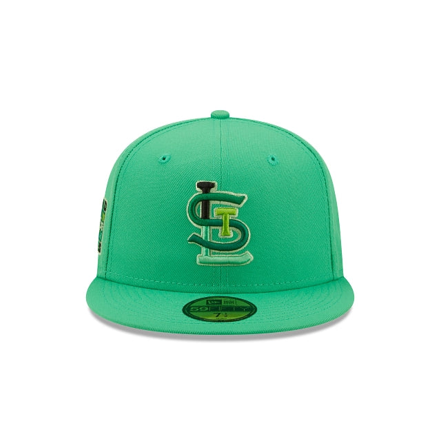 The St. Louis Cardinals Snakeskin 59FIFTY Fitted Cap features an embroidered Cardinals multi-colored logo at the front panels, a 2006 World Series patch at the right-wear side, and a matching MLB Batterman logo at the rear. Additional details include a snakeskin inspired inner sweatband and green undervisor.