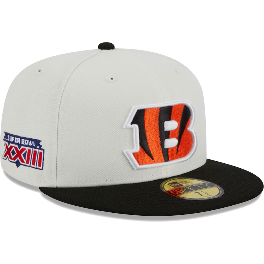 Upgrade your Cincinnati Bengals gear with the Retro 59FIFTY hat from New Era. This fitted hat boasts the team's logo on the front and a commemorative Super Bowl patch on the side. With its structured design, this hat is bound to become your top choice for showing off your Cincinnati Bengals pride.