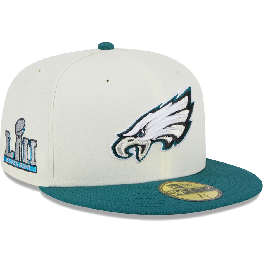 Upgrade your Philadelphia Eagles gear with the Retro 59FIFTY hat from New Era. This fitted hat boasts the team's logo on the front and a commemorative Super Bowl patch on the side. With its structured design, this hat is bound to become your top choice for showing off your Philadelphia Eagles pride.