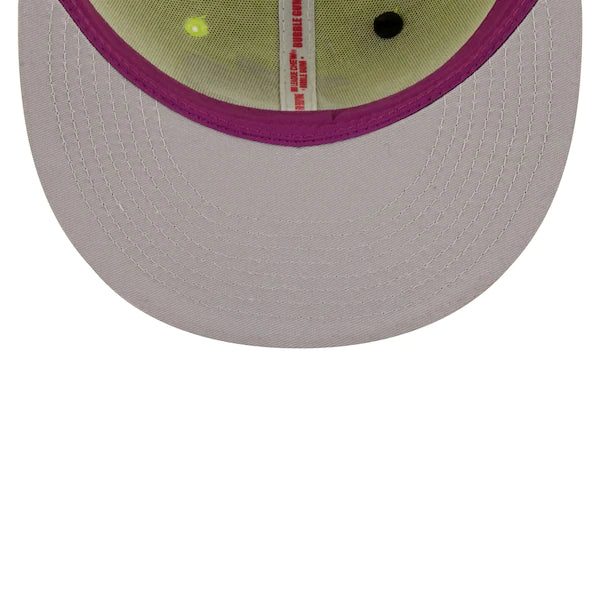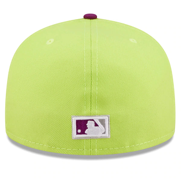 The MLB and Big League Chew have teamed up to bring Tampa Bay Rays fans this one of a kind, Swingin' Sour Apple Flavor Pack 59FIFTY Fitted Hat. Featuring a high crown and flat bill, this New Era hat will take your game day look to the next level. Its classic and fun graphics combine your Tampa Bay Rays and your all-time favorite Big League Chew flavor, making it unlike anything else in your collection.