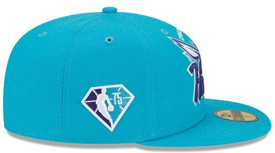 Fresh look for a fresh start. The Charlotte Hornets Tip Off 59FIFTY Fitted Cap features a custom Hornets mark inspired by logos and wordmarks embroidered at the front panels with the Official NBA 75th anniversary logo embroidered at the right-wear side. Additional details include a team logo at the rear with a gray undervisor.