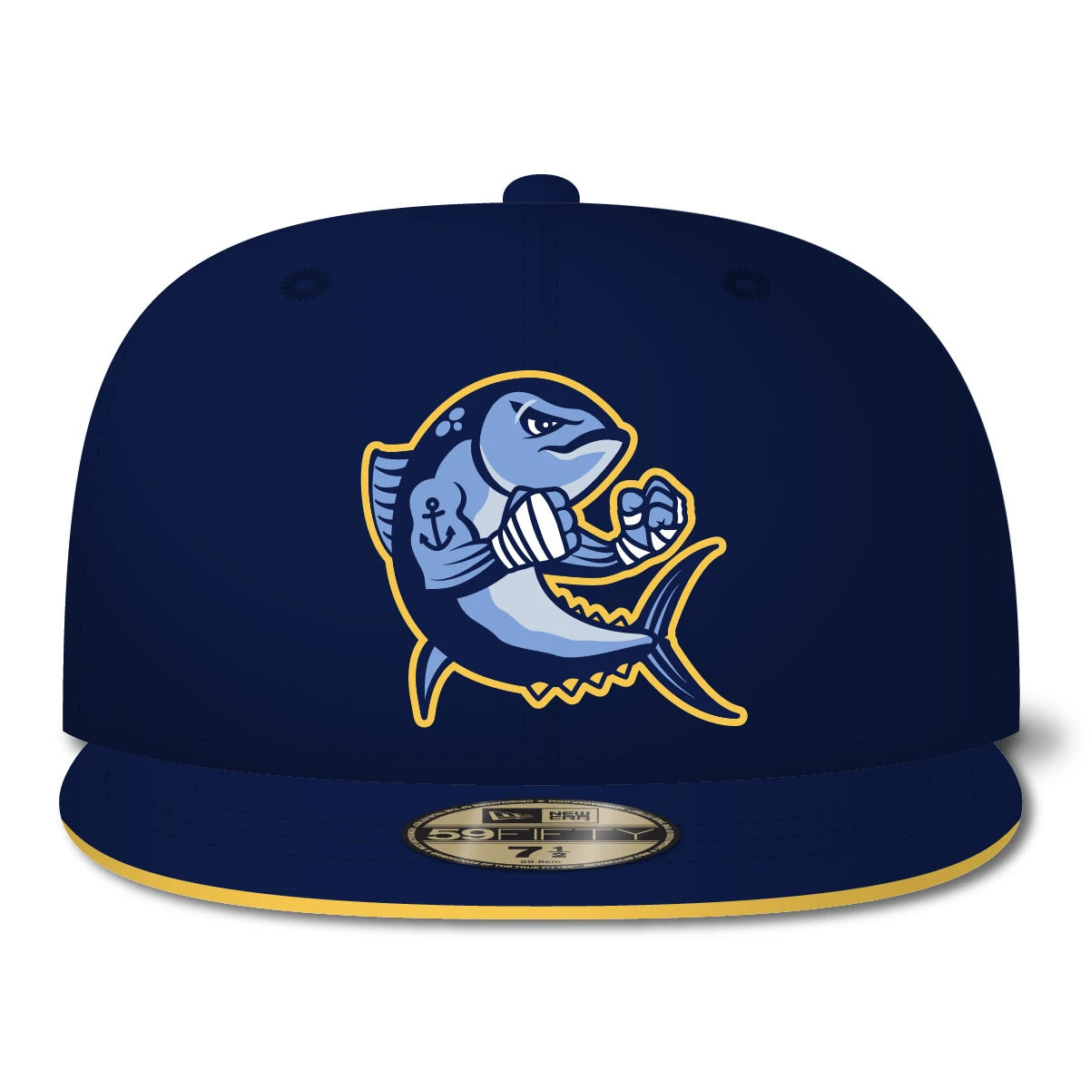The New Era Bluefin Brawlers 59FIFTY Fitted Hat has been design by Nate. It was inspired by the bluefin tuna being known by anglers as the hardest fighting fish in the ocean. So, I thought it would be fun to do a bareknuckle brawler version of a bluefin tuna. Never tangle with a Bluefin Brawler because they never back down from a good fight!