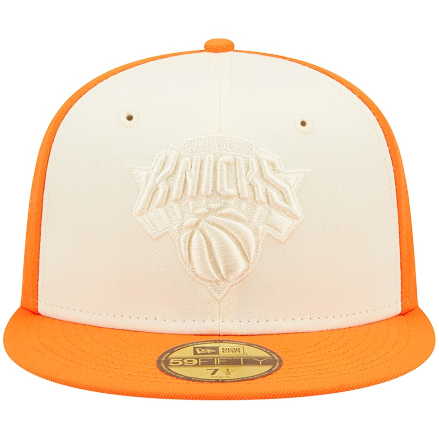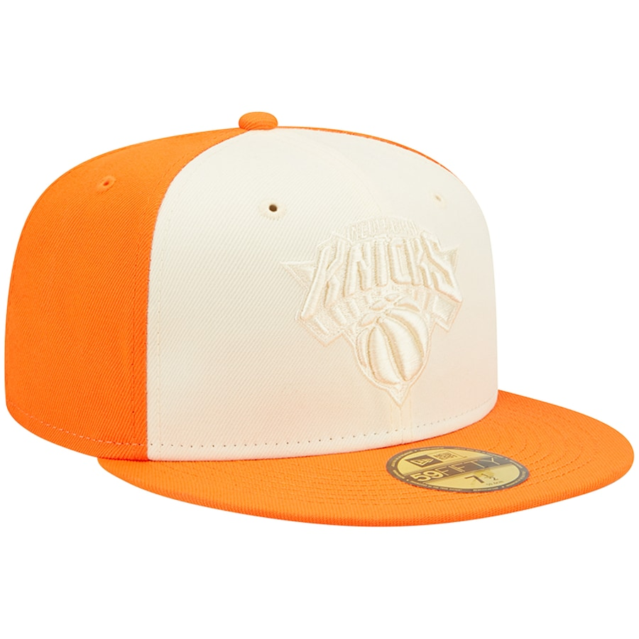 Top your game day getup off excellent with a bold display of New York Knicks pride by sporting this Cork Two-Tone 59FIFTY fitted hat from New Era. It features the New York Knicks logo in raised embroidery on the front panels and a contrasting color on the bill and rear crown that makes this cap a striking focal point. In addition, the fitted design ensures it rests comfortably on the head each time you reach for it.