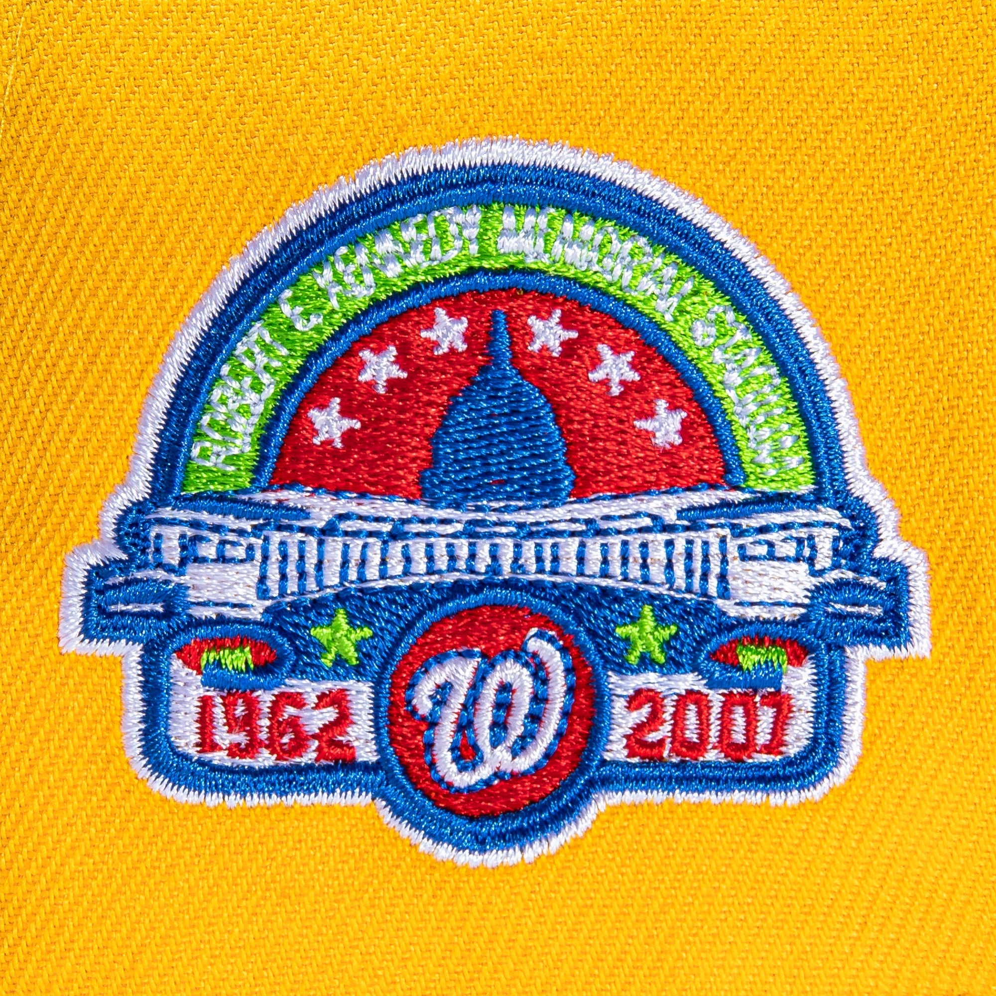 This New Era Washington Nationals "Cereal Pack Bonus Flavors" RFK Stadium 59FIFTY Fitted Hat is a Hat Club exclusive release. The fitted has a six panel structured high crown, embroidered eyelets, a fabric squatchee button and a flat visor. The front panel includes the MLB team logo embroidery. The left panel features the New Era logo embroidery and the official MLB insignia on the rear-crown. The Cereal Pack Bonus Flavor fitted caps were inspired by the colorways of well known cereal brands & flavor. These Cereal Pack fitteds are the Part 2 to the original drop that were released in 2021.