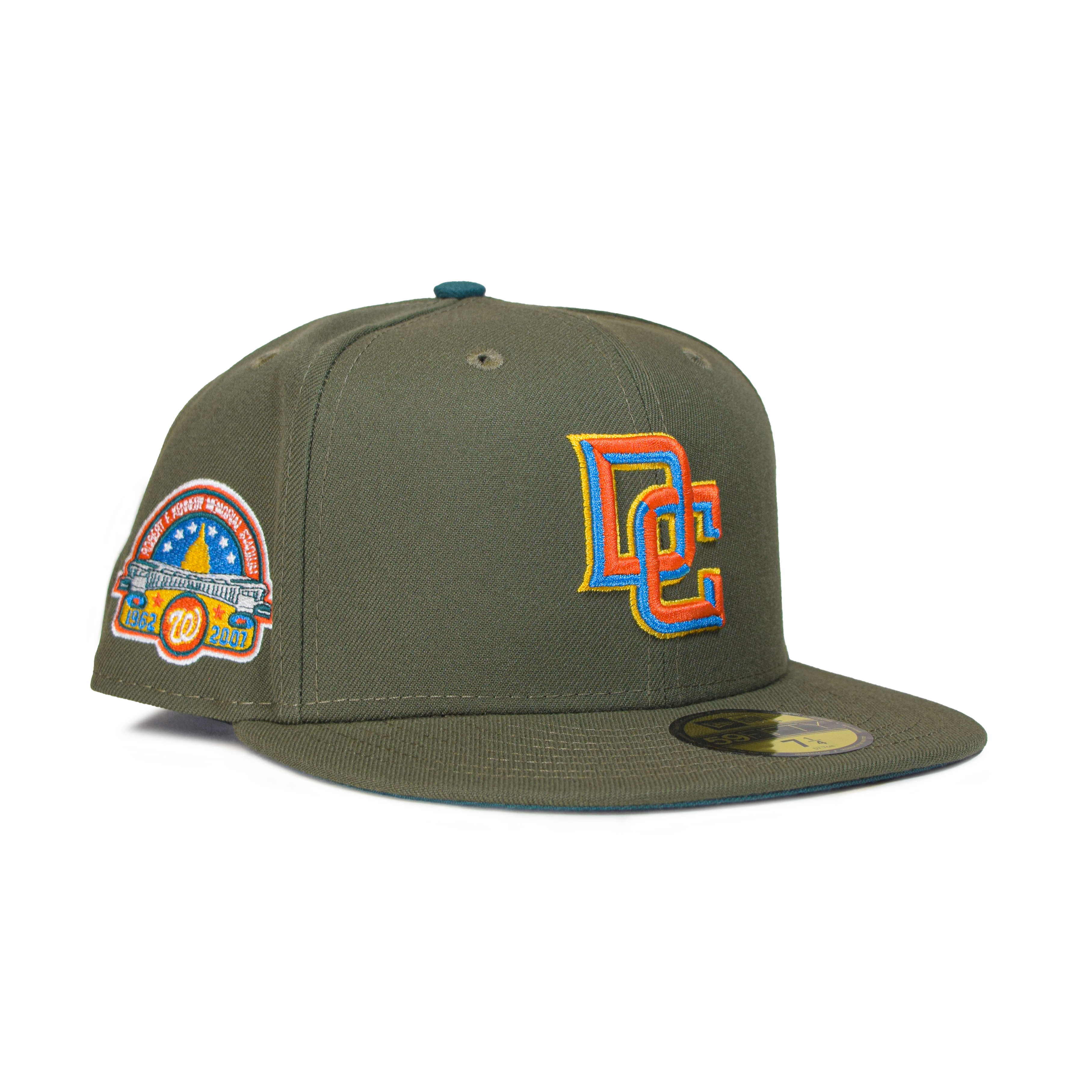 This New Era New Era Washington Nationals "Mystic Pines" 59FIFTY Fitted Hat was released by Capanova.The Mystic Pine collection features a pine green, olive green, blue and orange colorway. The fitted caps include a six panel construction, fabric squatchee button, embroidered eyelets and a flat brim. The front panel includes the Washington Nationals logo embroidery and a side patch on the right-wear side.