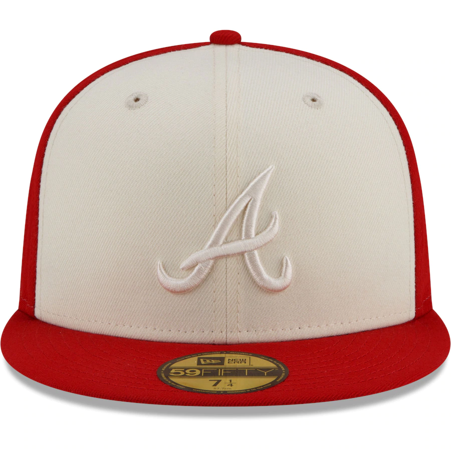 Make your outfit pop with this Atlanta Braves Tonal 59FIFTY hat from New Era. Its two-tone design features a monochromatic Atlanta Braves logo in raised embroidery and a contrasting undervisor. The fitted construction also creates a secure, snug fit.