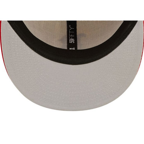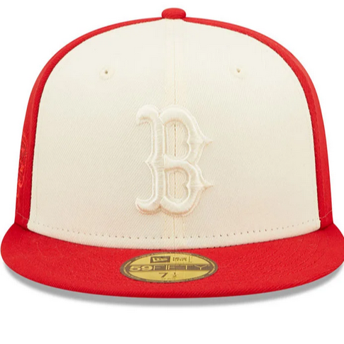 This New Era Boston Red Sox 2 Tone fitted hat features a red six panel structured high and grey undervisor with a black sweatband.