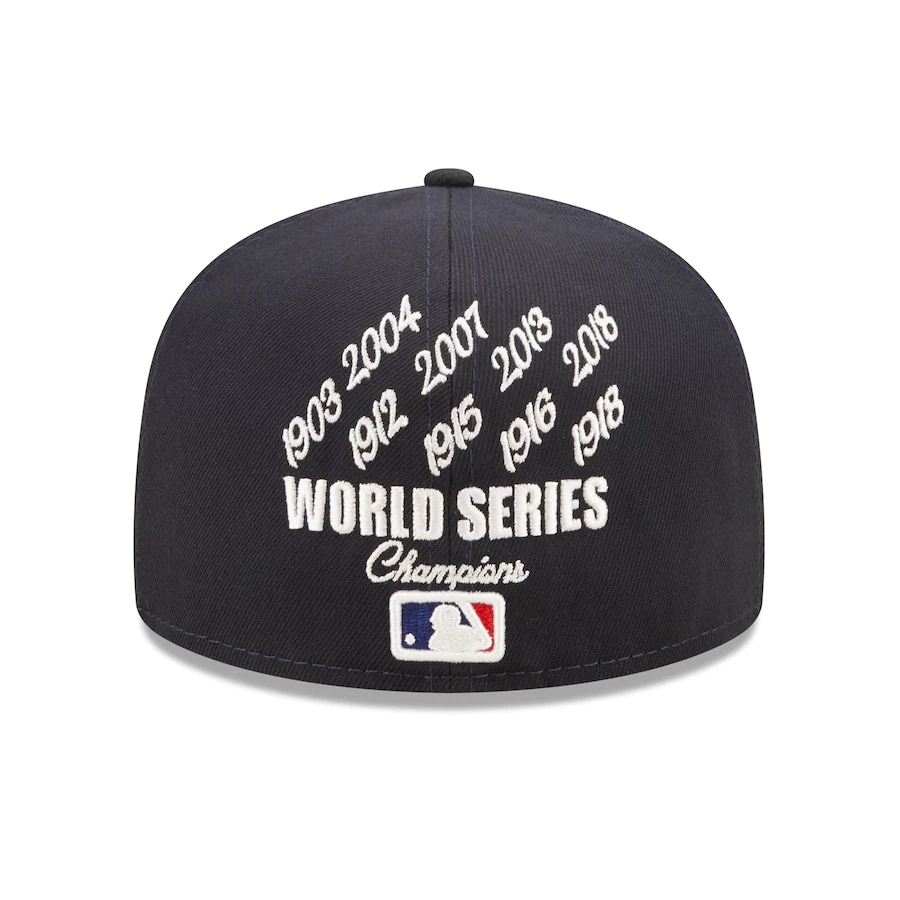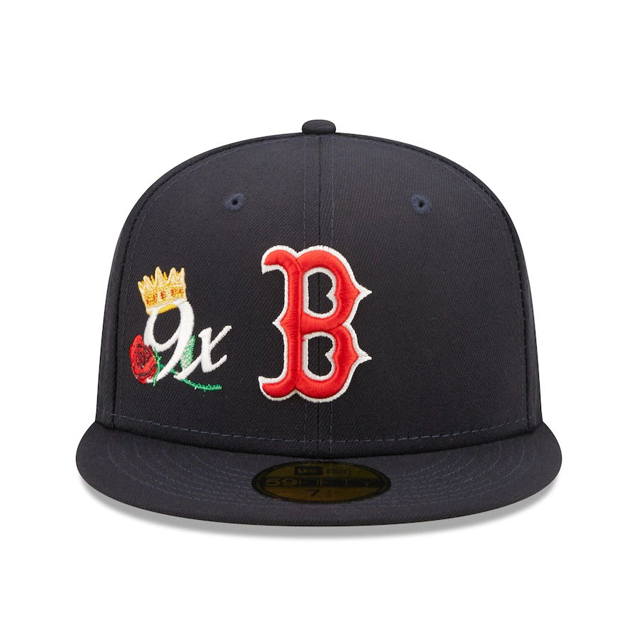 Put the spotlight on your Boston Red Sox previously taking home the Commissioner's Trophy with this Crown 59FIFTY hat from New Era. It features the Boston Red Sox logo in raised embroidery and commemorative 9x World Series Champions graphics embroidered on the front and back. The fitted construction also ensures a perfect fit.