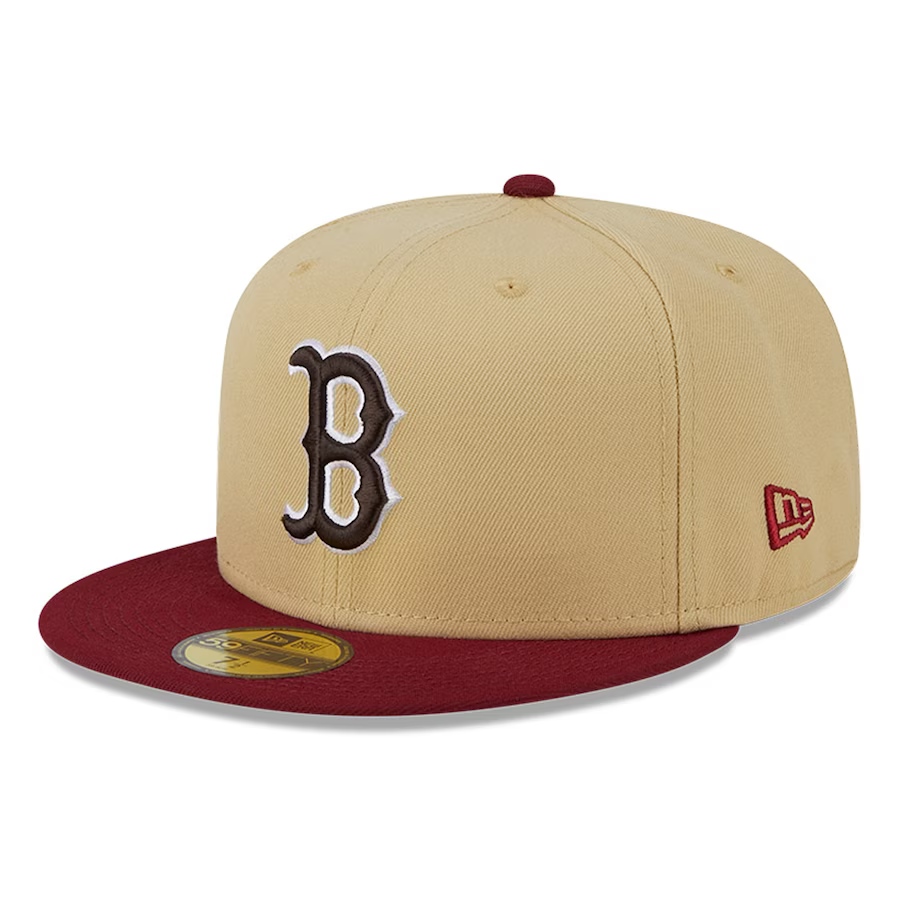 Add a distinctive touch to your team spirit with the Boston Red Sox Vegas Gold and Cardinal 59FIFTY hat by New Era. This hat showcases a raised embroidered team logo on the front crown and a patch on the right side panel. With its structured build, this fitted cap offers a secure and comfortable fit, making it ideal for all-day wear while cheering on the Boston Red Sox.