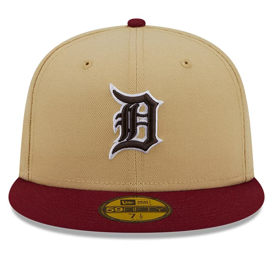Add a distinctive touch to your team spirit with the Detroit Tigers Vegas Gold and Cardinal 59FIFTY hat by New Era. This hat showcases a raised embroidered team logo on the front crown and a patch on the right side panel. With its structured build, this fitted cap offers a secure and comfortable fit, making it ideal for all-day wear while cheering on the Detroit Tigers.