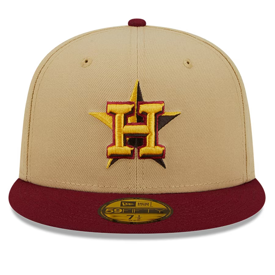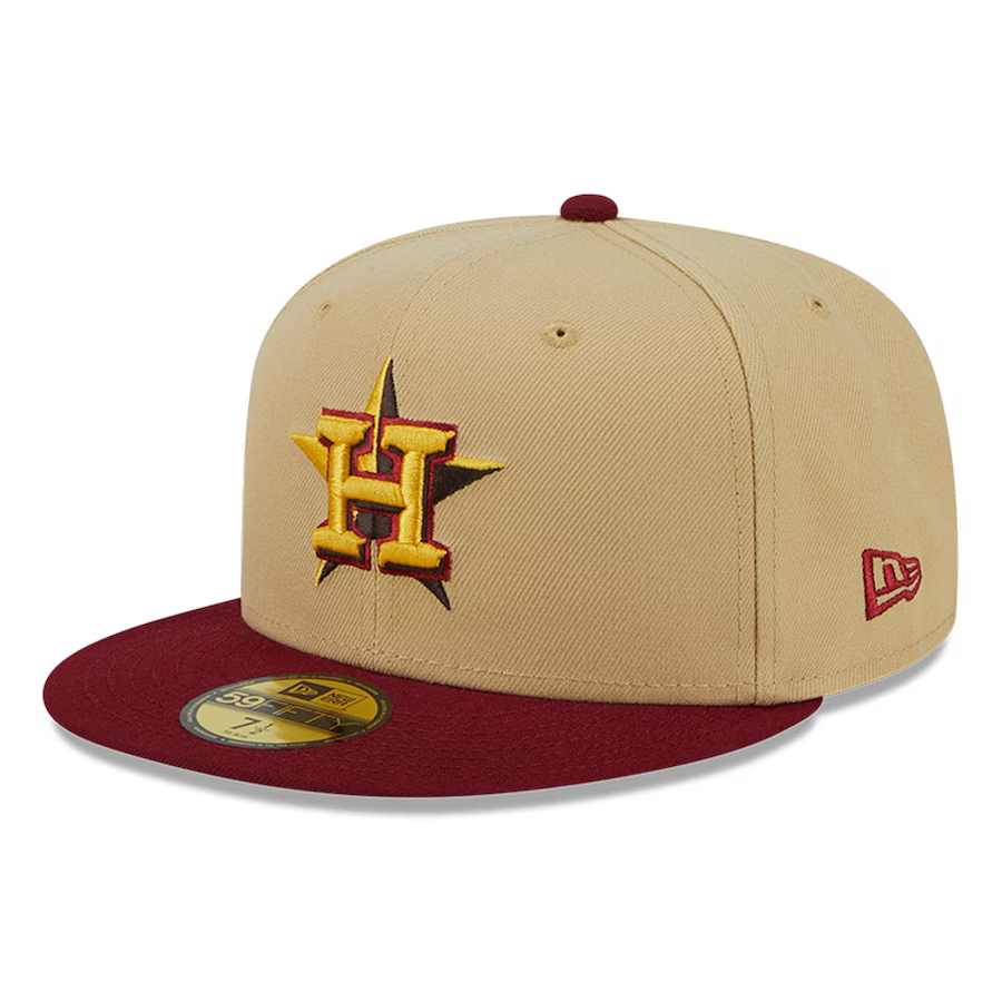 Add a distinctive touch to your team spirit with the Houston Astros Vegas Gold and Cardinal 59FIFTY hat by New Era. This hat showcases a raised embroidered team logo on the front crown and a patch on the right side panel. With its structured build, this fitted cap offers a secure and comfortable fit, making it ideal for all-day wear while cheering on the Houston Astros.