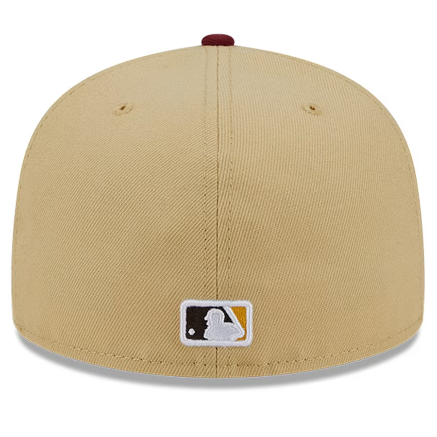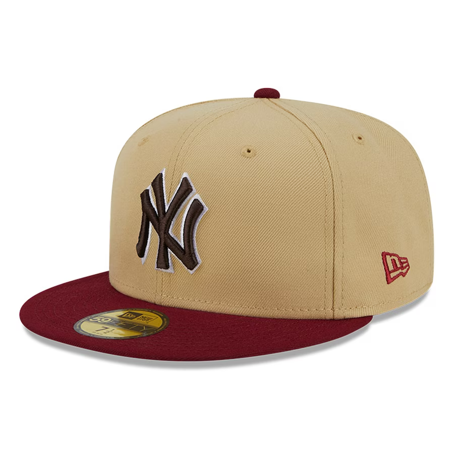 Add a distinctive touch to your team spirit with the New York Yankees Vegas Gold and Cardinal 59FIFTY hat by New Era. This hat showcases a raised embroidered team logo on the front crown and a patch on the right side panel. With its structured build, this fitted cap offers a secure and comfortable fit, making it ideal for all-day wear while cheering on the New York Yankees.