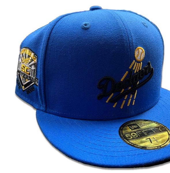 This New Era Los Angeles Dodgers "Dory" inspired 59FIFTY fitted hat has a royal blue six panel structured high crown, embroidered eyelets and fabric squatchee button. The fitted cap also has a royal blue flat bill, a yellow undervisor and black sweatband. The front panel features the Los Angeles Dodgers logo embroidery. The right panel features a 50th Anniversary side patch embroidery. This fitted was inspired by "Dory" the Pixar animated character debuted by Walt Disney in the 2003 film Finding Nemo.