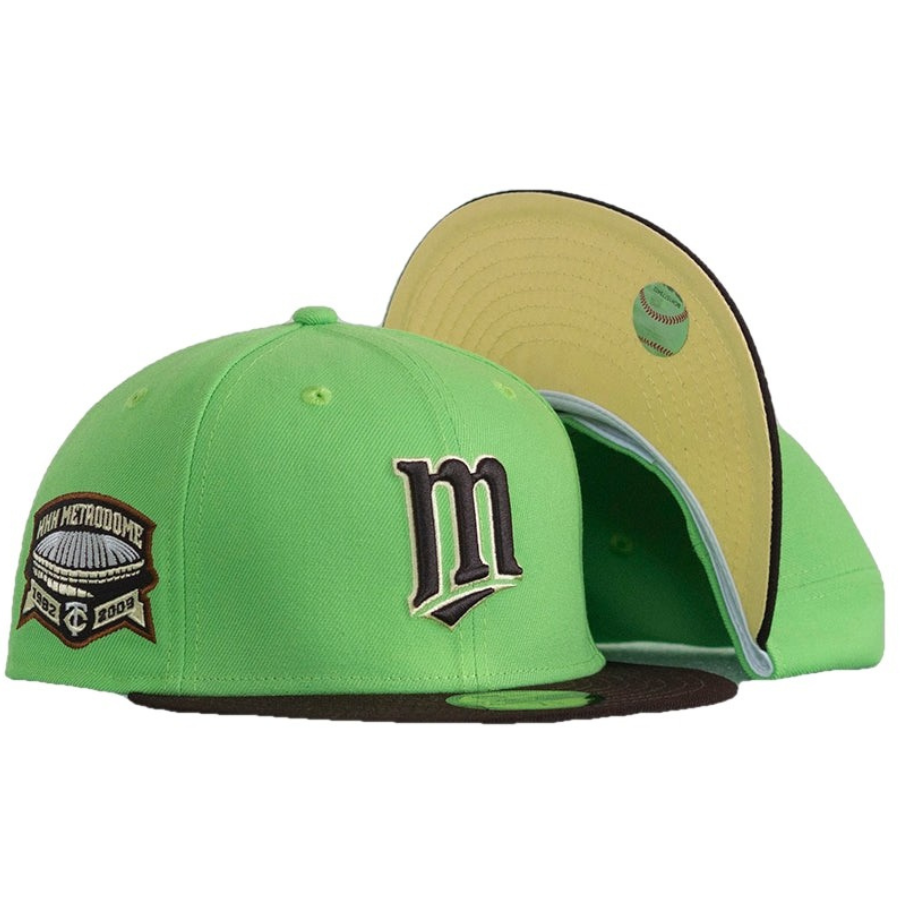 New Era Minnesota Twins Lime Green HHH Metrodome Soft Yellow Undervisor 59FIFTY Fitted Cap