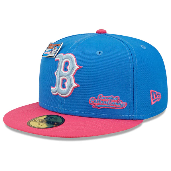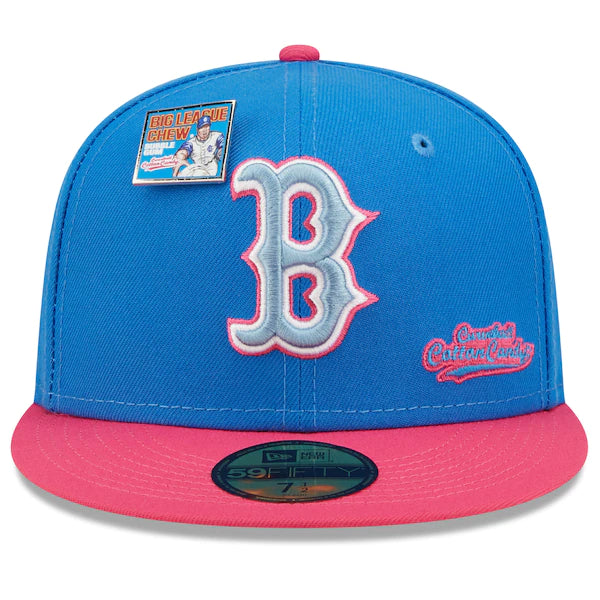 The MLB and Big League Chew have teamed up to bring Boston Red Sox fans this one of a kind, Curveball Cotton Candy Flavor Pack 59FIFTY Fitted Hat. Featuring a high crown and flat bill, this New Era hat will take your game day look to the next level. Its classic and fun graphics combine your Boston Red Sox and your all-time favorite Big League Chew flavor, making it unlike anything else in your collection.