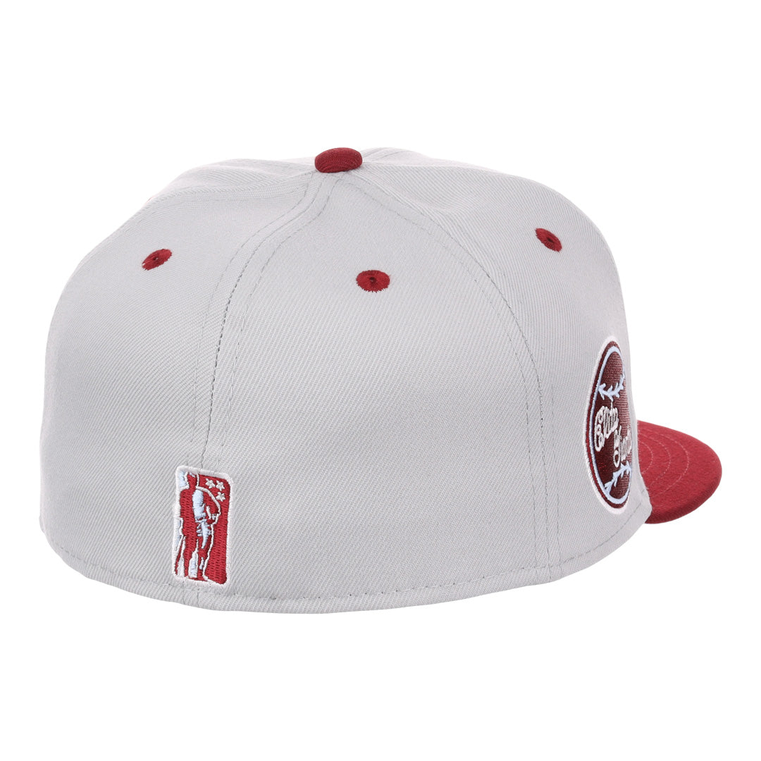 Description: Featuring a two-tone construction with storm gray crown and maroon visor, the Storm Chaser Vintage Inspired fitted collection takes some of our favorite teams and their logos, and recontextualizes them to create fashion pieces that will shine in your wardrobe. The contemporary high crown structured fitted cap features raised embroidery front logo with embroidered side patch and rear league logo.