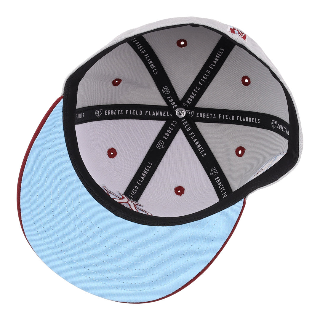 Description: Featuring a two-tone construction with storm gray crown and maroon visor, the Storm Chaser Vintage Inspired fitted collection takes some of our favorite teams and their logos, and recontextualizes them to create fashion pieces that will shine in your wardrobe. The contemporary high crown structured fitted cap features raised embroidery front logo with embroidered side patch and rear league logo.
