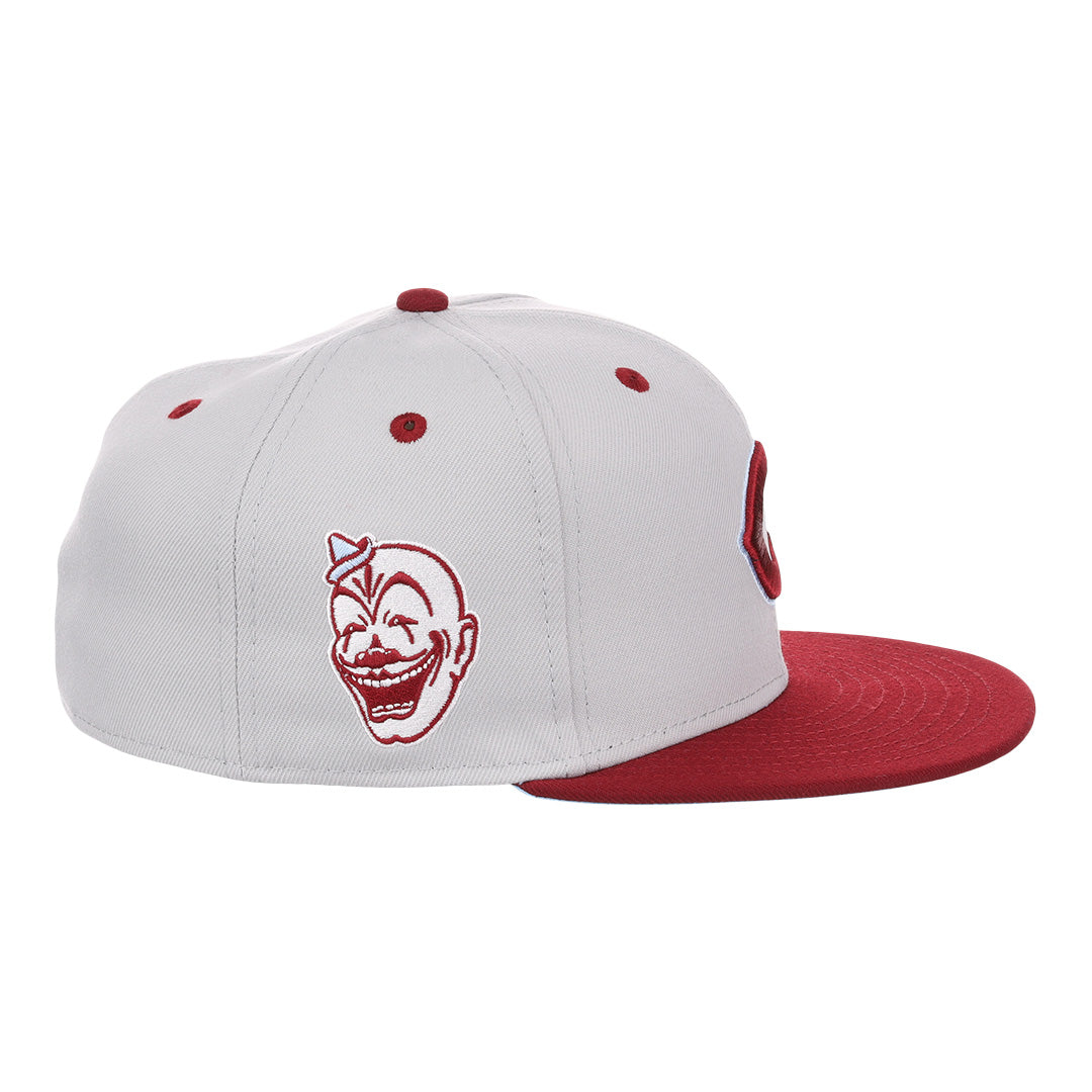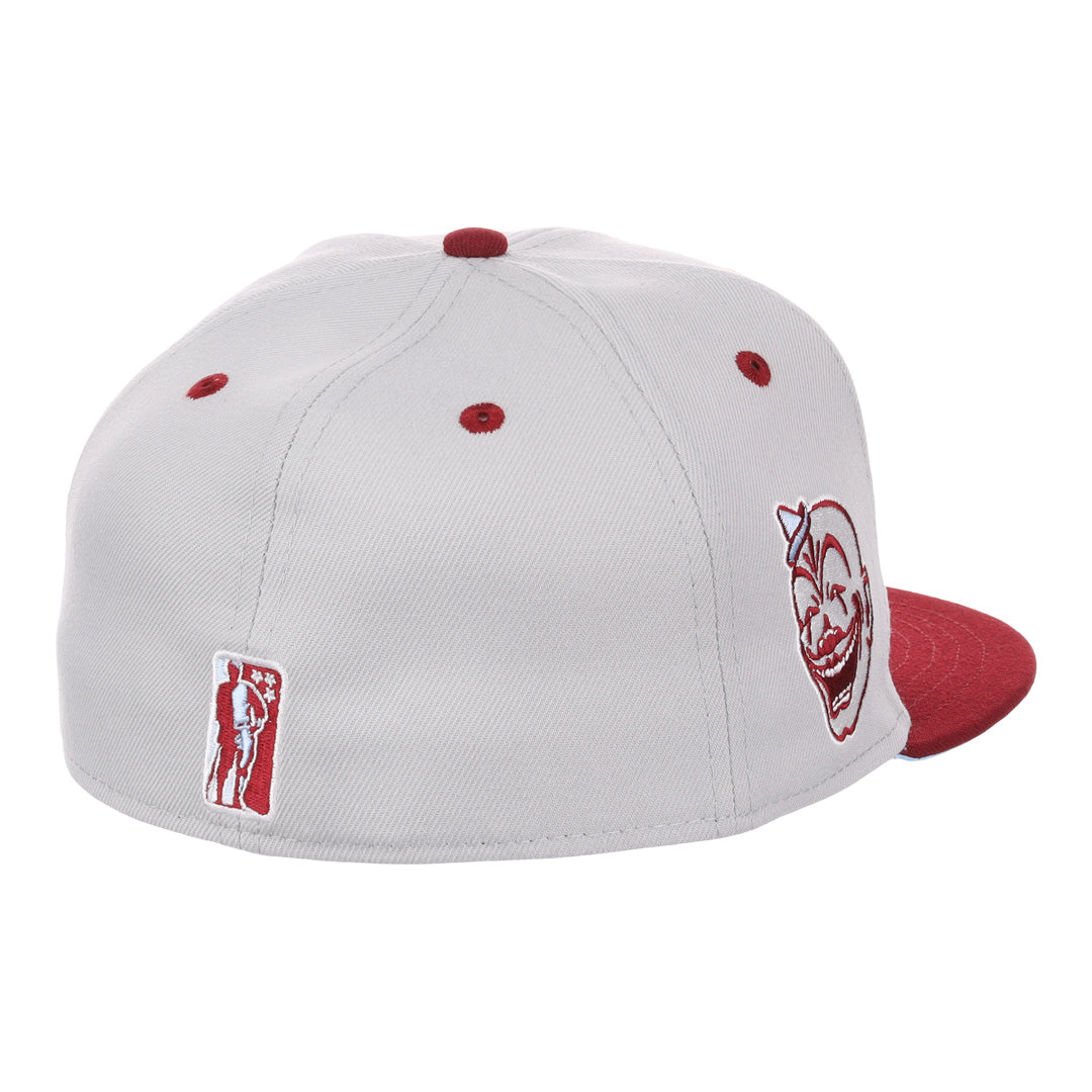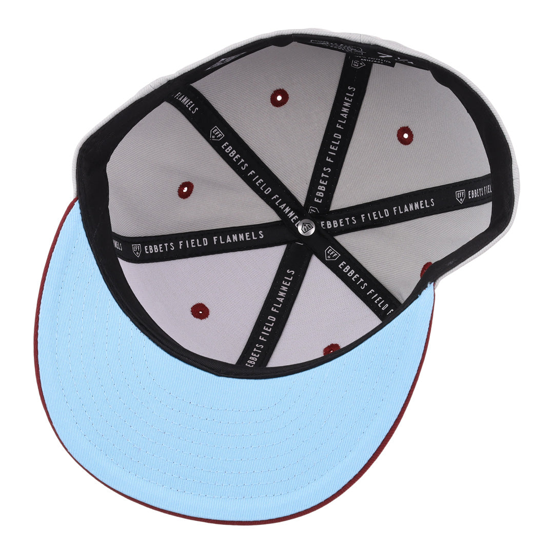 Description: Featuring a two-tone construction with storm gray crown and maroon visor, the Storm Chaser Vintage Inspired fitted collection takes some of our favorite teams and their logos, and recontextualizes them to create fashion pieces that will shine in your wardrobe. The contemporary high crown structured fitted cap features raised embroidery front logo with embroidered side patch and rear league logo.
