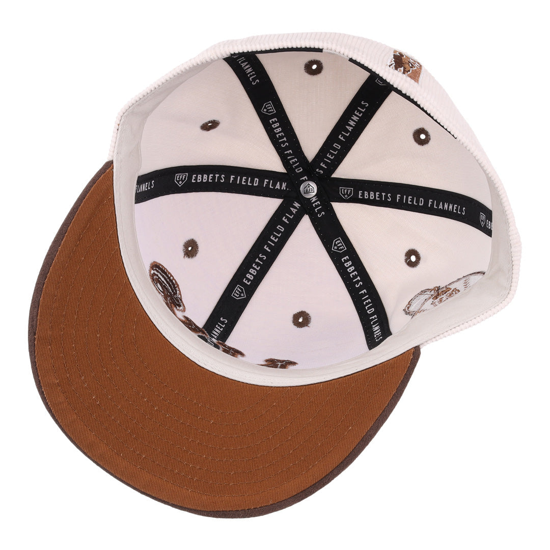 Description: Featuring a two-tone construction with vintage white corduroy crown and brown sueded visor, the Sandbag Cord Vintage Inspired fitted collection takes some of our favorite teams and their logos, and recontextualizes them to create fashion pieces that will shine in your wardrobe. The contemporary high crown structured fitted cap features raised embroidery front logo with embroidered side patch and rear league logo.